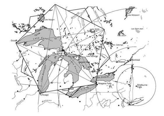 Ley lines are found around the world. This is a Map of Ley lines on the Great Lakes in North America.