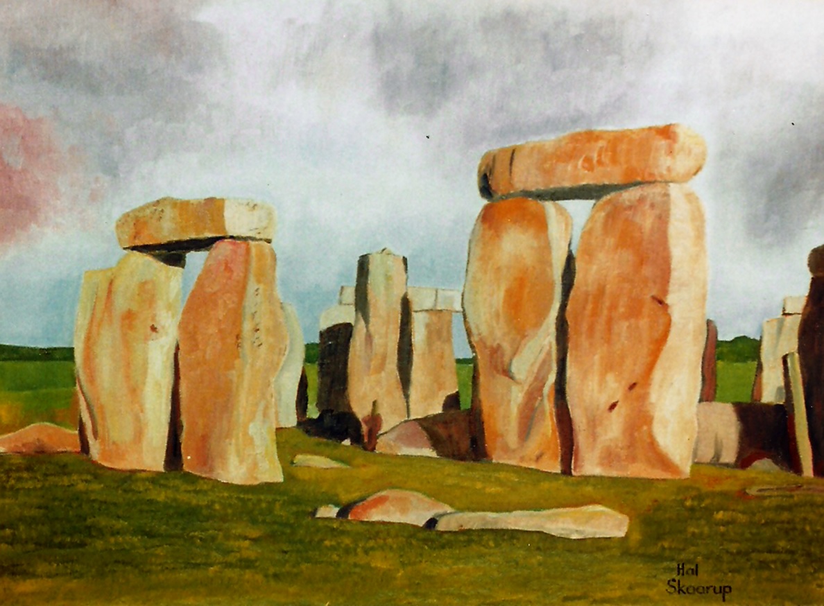 Stonehenge in afternoon sunlight, #1, Oil, 30 X 40 cm, painted from a photo I took on 23 October 1988. (Author’s artwork)