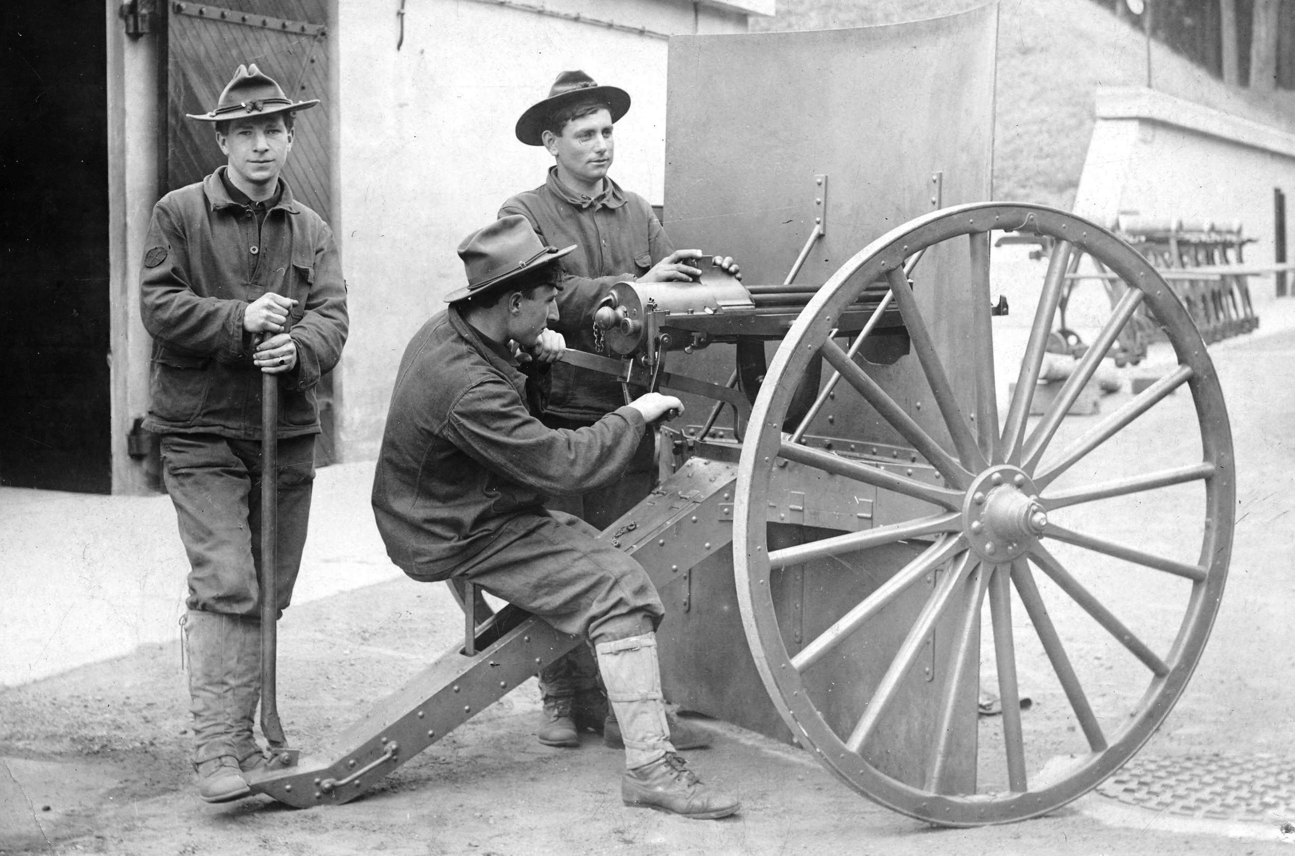 Gatling Gun being used by a National Guard Unit visiting Vancouver, British Columbia for an international competition in 1906.