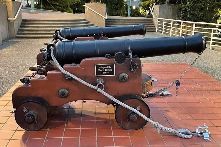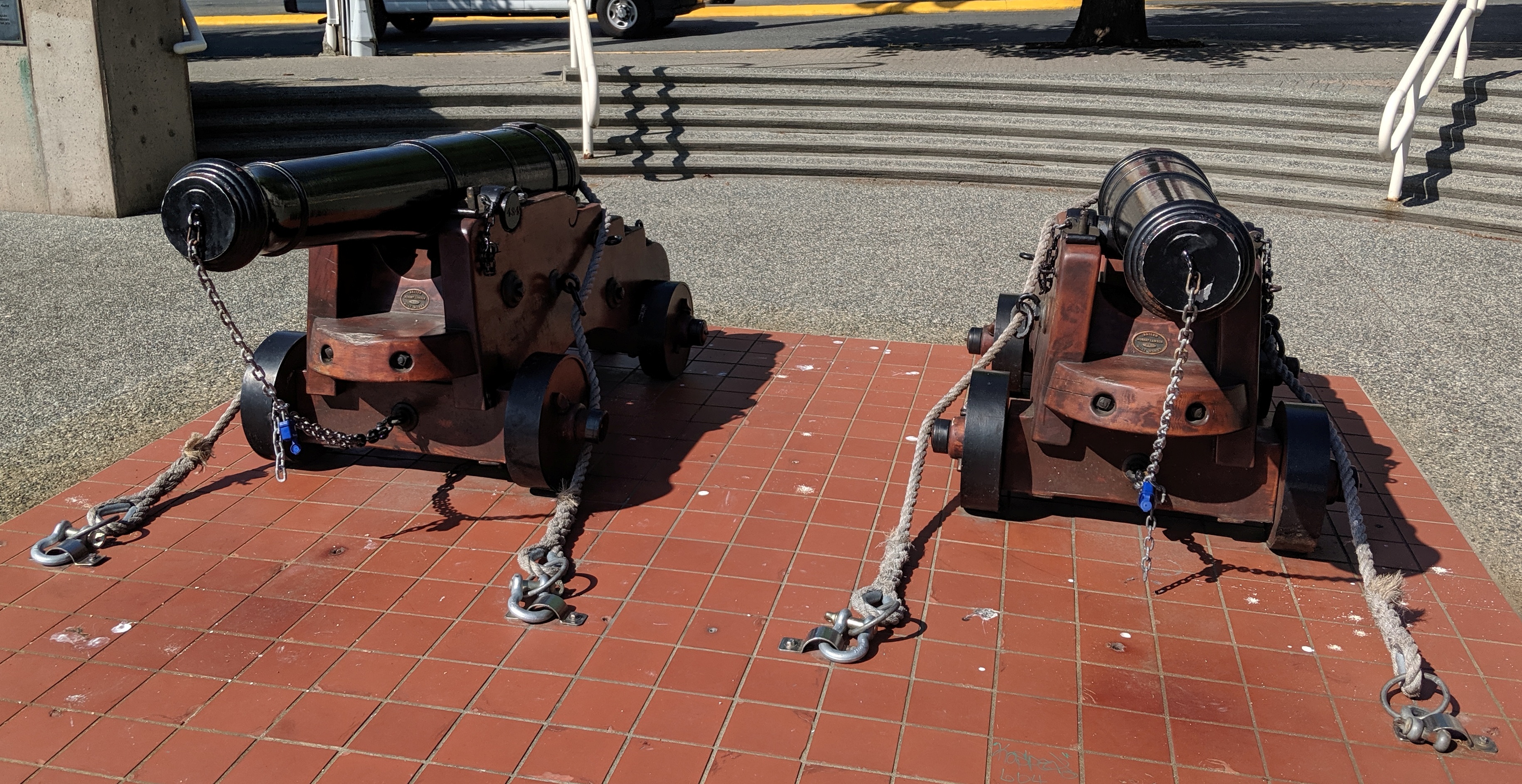 One of two on display at the old Hudson’s Bay Company bastion in downtown Nanaimo. They are reputed to have been part of the original armament of the bastion. During the summer months one of these guns is fired daily at noon.