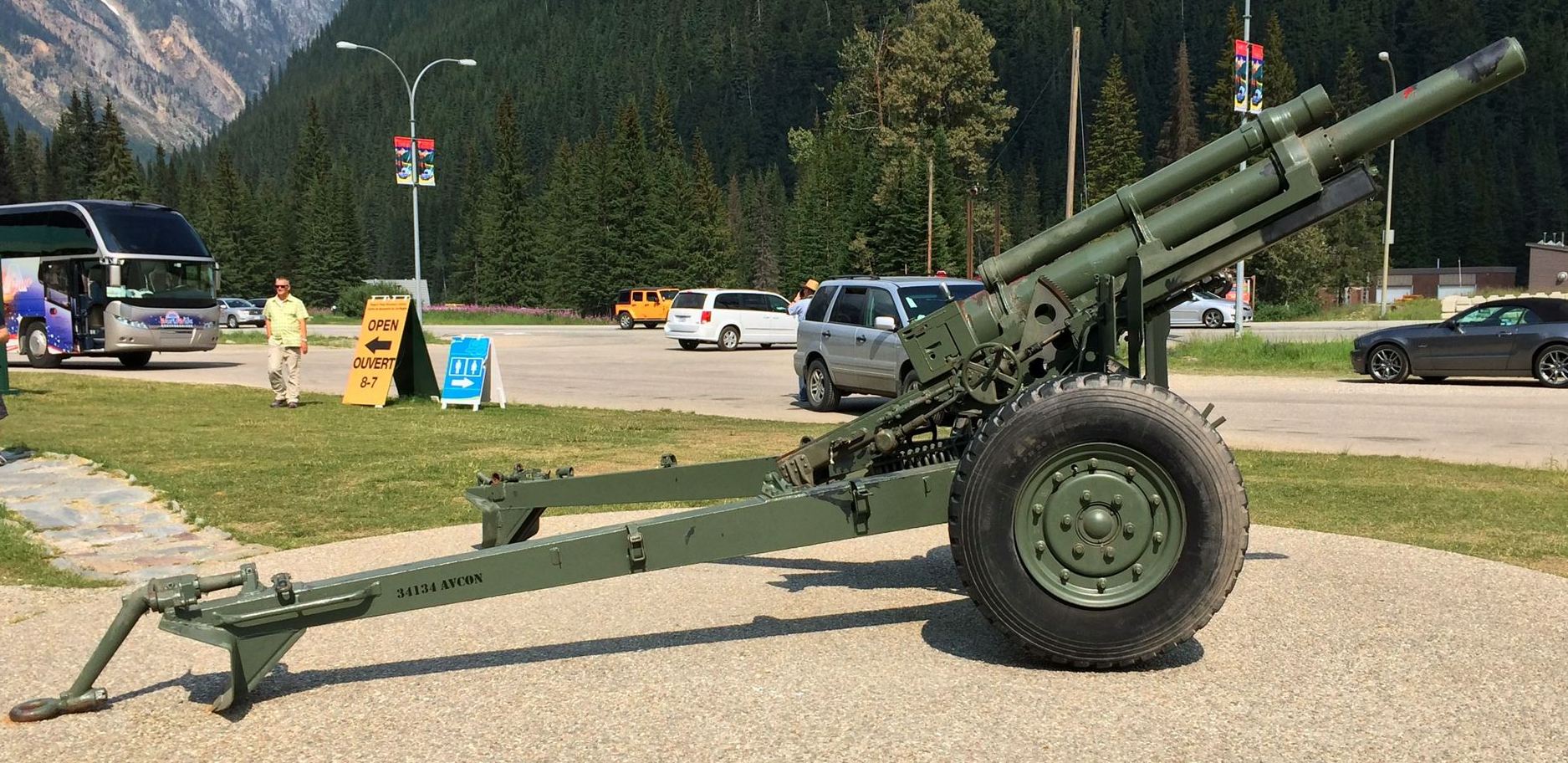 These 105-mm C1A1 Howitzers were used as part of Operation PALACI, the Canadian Armed Forces’ contribution to Parks Canada’s avalanche-control program in Rogers Pass. Every winter, Howitzers like this are used to trigger controlled avalanches high in the surrounding mountains in an effort to prevent potentially-deadly uncontrolled avalanches from coming down on the Trans-Canada Highway. These guns are located on the side of the Trans-Canada Highway near the Rogers Pass monument, at the summit of Rogers Pass in British Columbia.