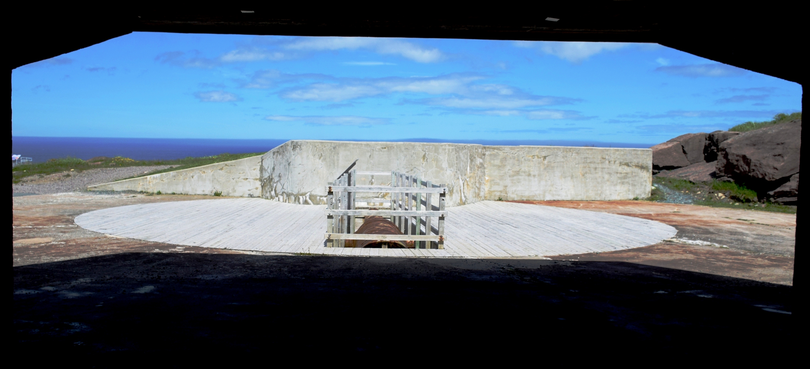 A total of eight 10-inch American ex-pats were located on the East Coast during the Second World War, including two disappearing guns at Fort Cape Spear (both still there), two barbette guns at Botwood, Newfoundland, two barbette guns at Fort McNutt, McNutt’s Island, Shelburne, Nova Scotia (both still there), one barbette and one disappearing gun at Fort Prevel, Quebec.