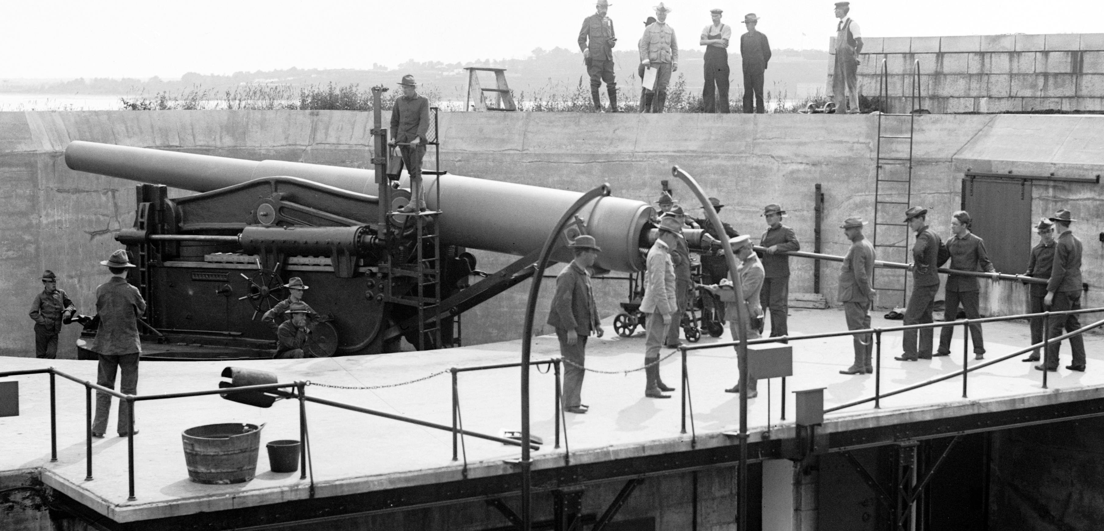 8-inch, 10-inch & 12-inch Guns on barbette carriages, ca 1898, Sandy Hook Coastal Defense Batteries, Gateway National Recreation Area, Fort Hancock, New Jersey.