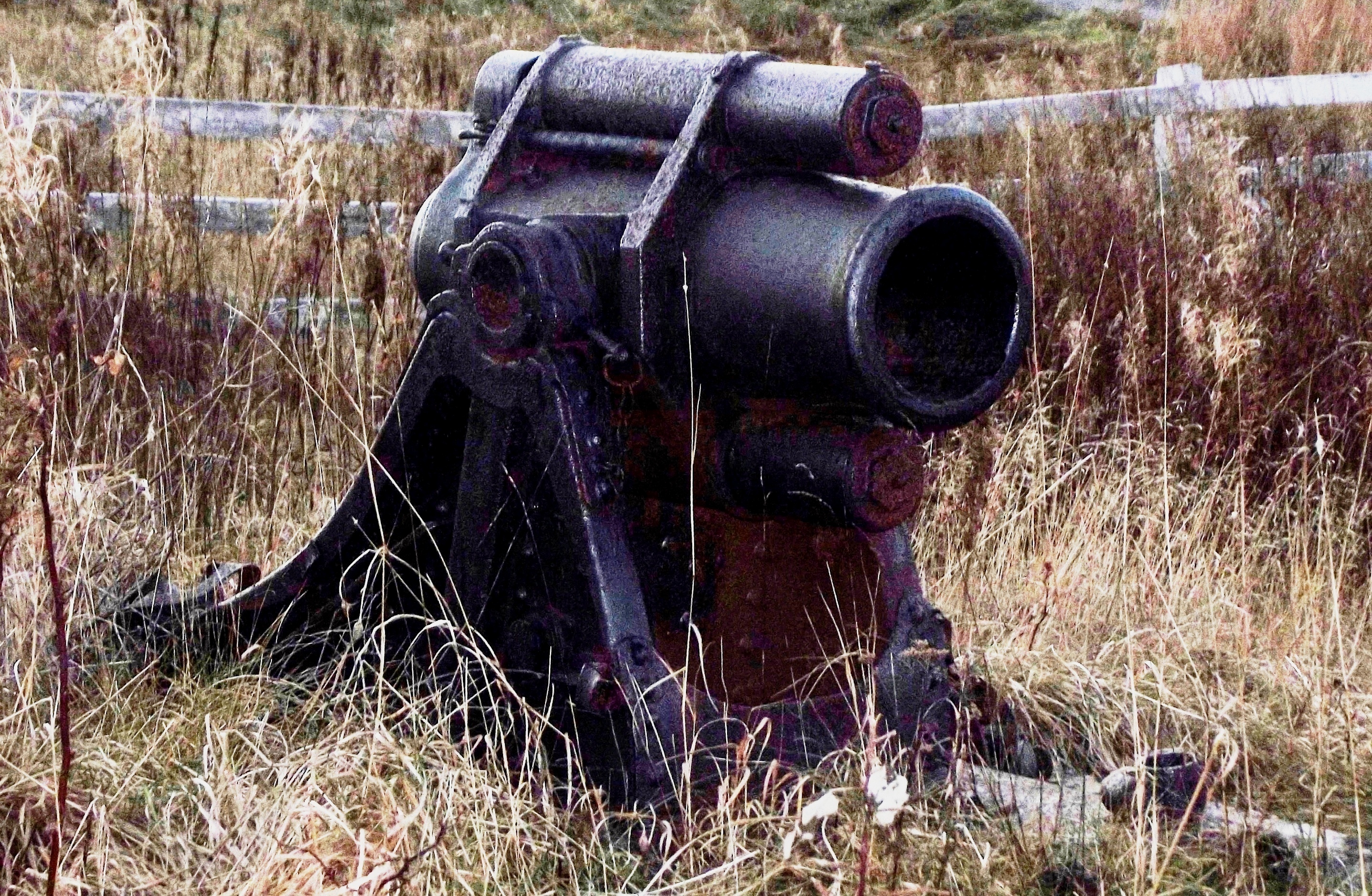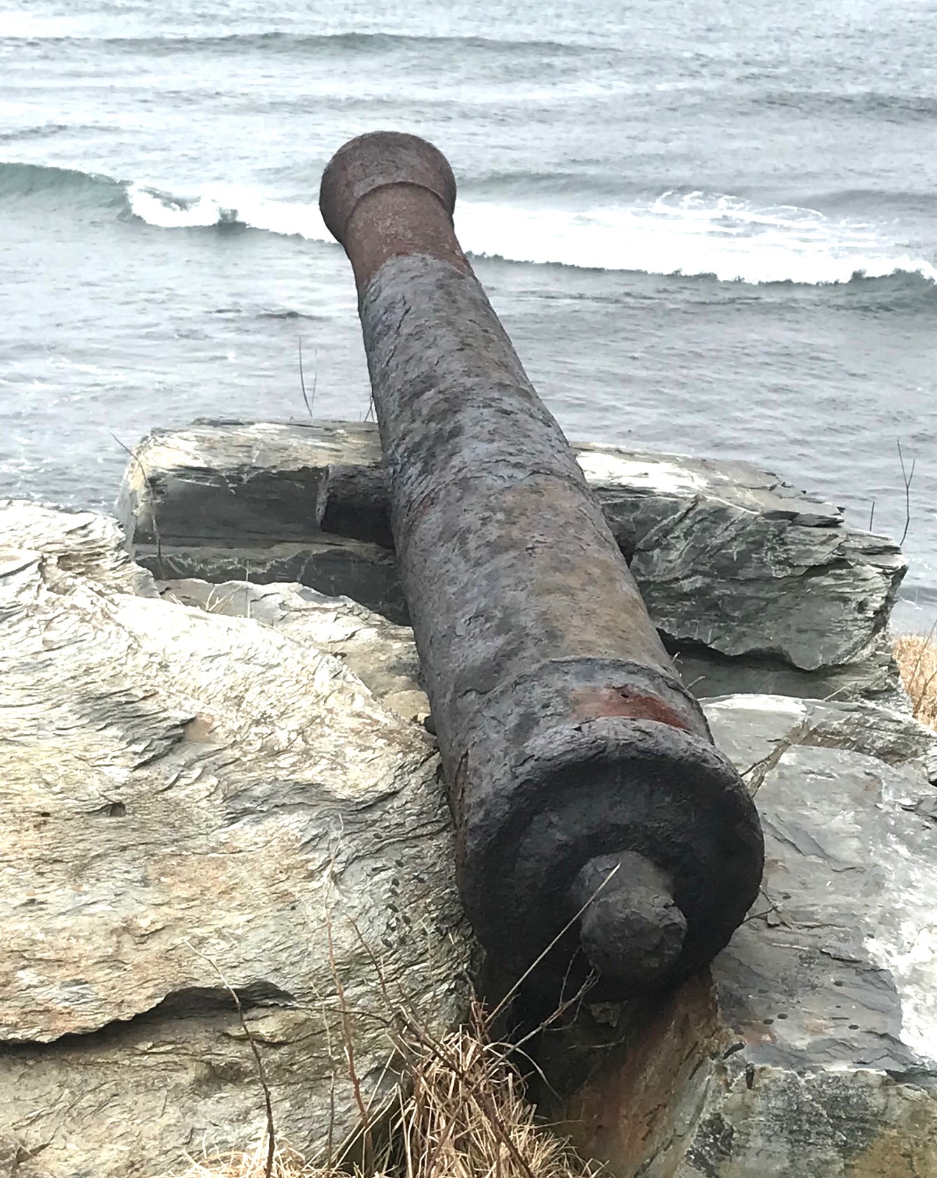 Cast Iron Smoothbore Muzzleloading Gun, heavily corroded, mounted on rocks at an old battery going out to the lighthouse. This gun has been spiked (Gary Kett)