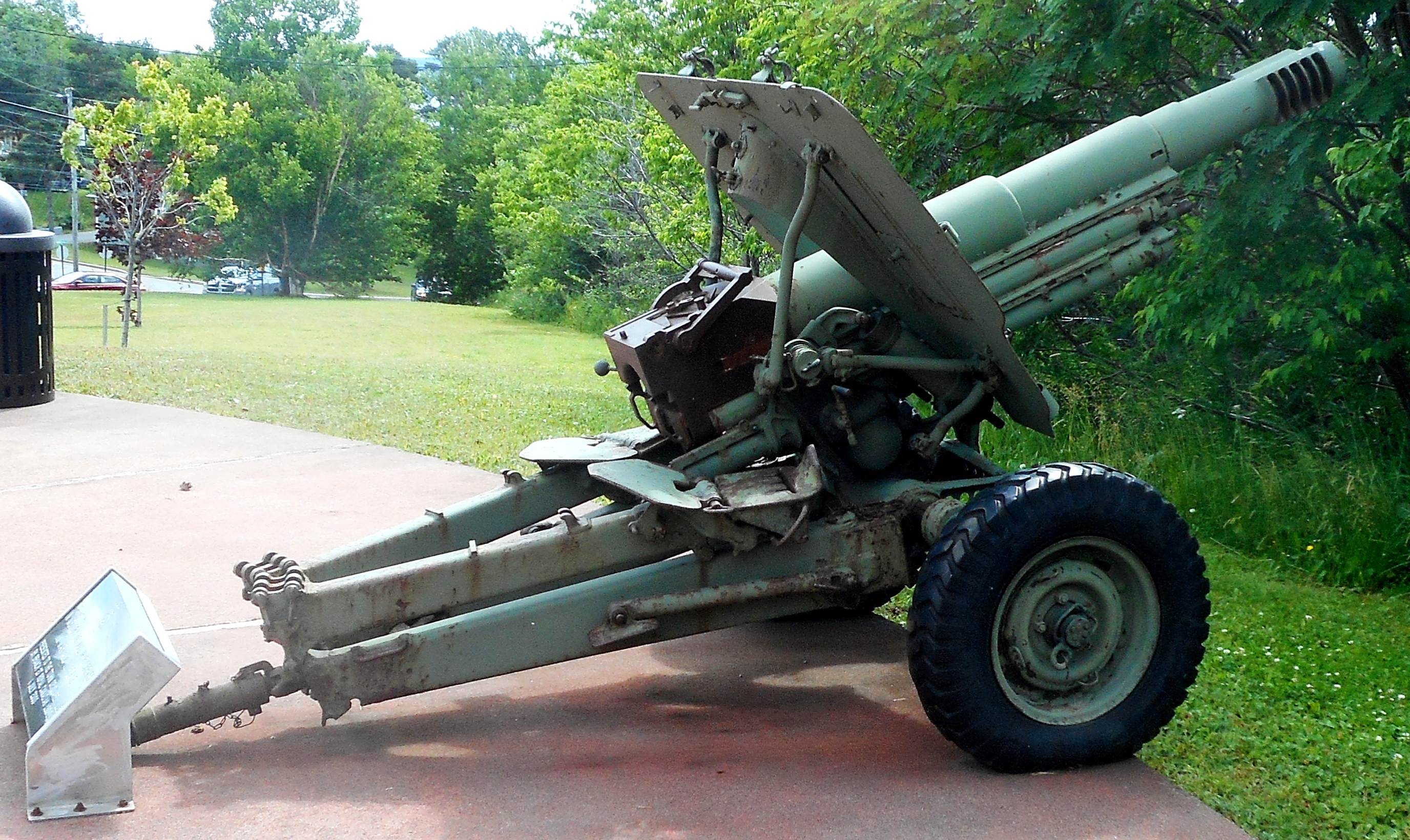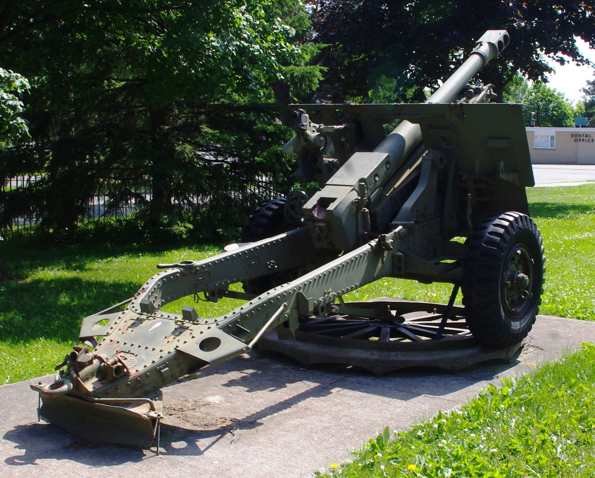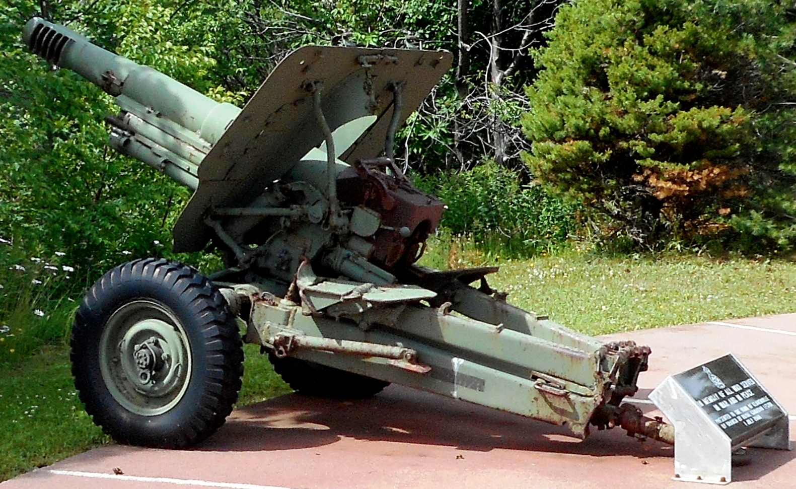 105-mm L5 Pack Howitzer, CFR unknown, carriage No. 57668, 1969. This gun is located on Memorial Ave and Balbo Street, in front of the cenotaph and across from the Town Hall.