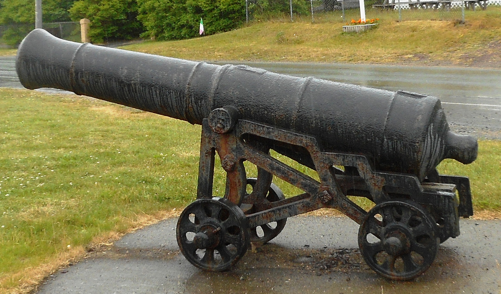 In 1812 Mr. H. C. Watts asked Governor Duckworth to give Carbonear three guns to protect itself from American privateers. The biggest gun was called “Watts Long Tom” and was mounted on Harbour Rock Hill. Watts’ Long Tom, was placed in a gun pit at Crocker’s Cove Point in 1812 by the crew of H.M.S. Comet, under the command of Capt. Blamey. He had been sent around the harbours to the north of St. John’s both to place weapons to defend the harbours and to raise Volunteer Companies to man them. (Duckworth Papers pp 2647-50, 2810-2811 et al, PANL MG204 – mf copy of orig. PAC). The cannon was hauled from Crocker’s Cove Point to Harbour Rock Hill in February 1817 during the Winter of the Rals. The starving men from the smaller coves to the north of Carbonear aimed it into the town to threaten the merchants into giving them supplies. They came to some resolution. It appears to be an older pattern Armstrong 18 or 24 pdr, probably from the stores in St. John’s. Someone tried to fire it in recent times and blew the front of the muzzle off. (Alan Cass, Carbonear Heritage Society)
