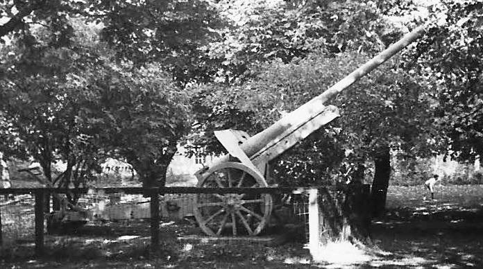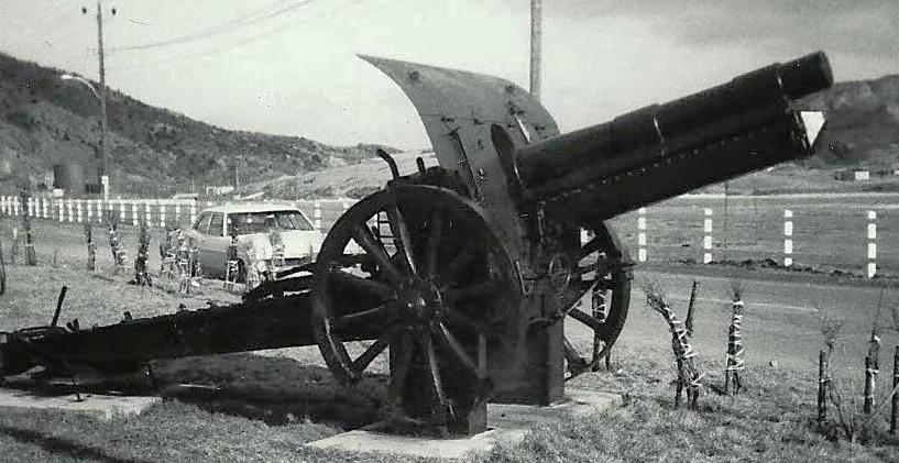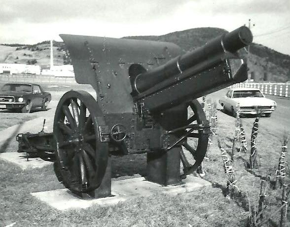 German First World War 15-cm schwere Feldhaubitze 13 Heavy Field Howitzer (Serial Nr. unknown). Originally No. 2 of 2, previously in front of the Colonial Building, this gun has been lost in a landfill.