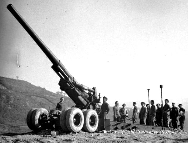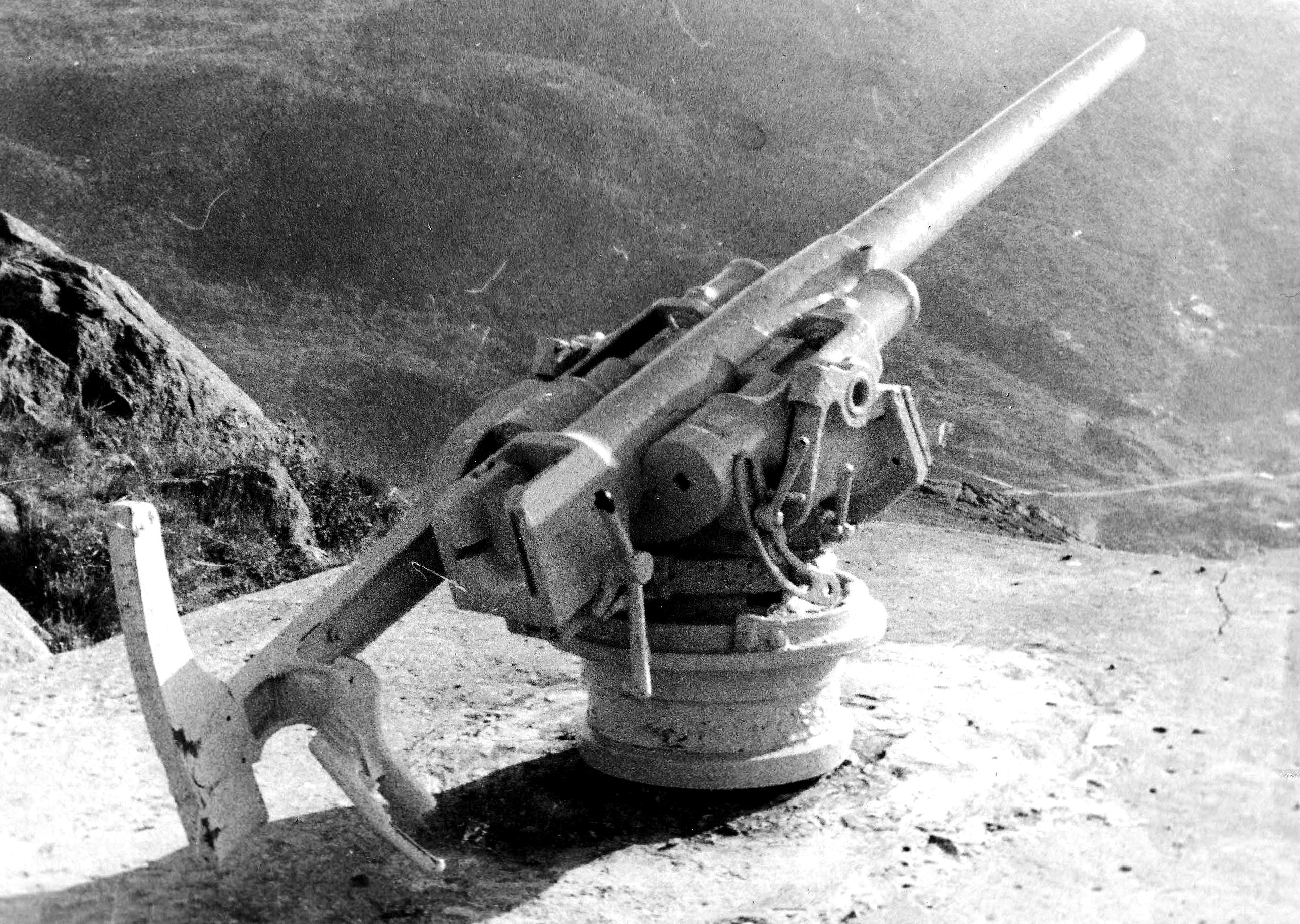 American 155-mm American M2 Gun “Long Tom” on Mk. I Carriage, in service with the British 33/61 Heavy Regiment, Royal Artillery, at Vergato, Italy. Gunners of the 59th (Newfoundland) Heavy Regiment made good use of this gun during the Second World War. The authorised establishment of British batteries (excluding training units), including four batteries from the Dominion of Newfoundland, totalled 88 guns.