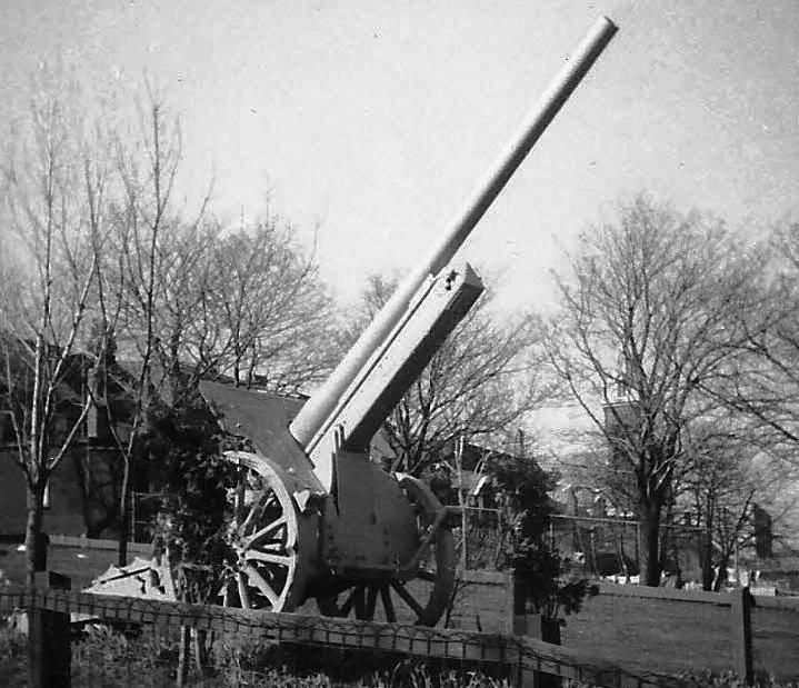 German First World War 10-cm Kanone 17 Field Gun (10-cm K 17), (Serial Nr. unknown), field gun in Bannerman Park. This Gun has had its wheels replaced and has been restored four times by Nelson Sherren.