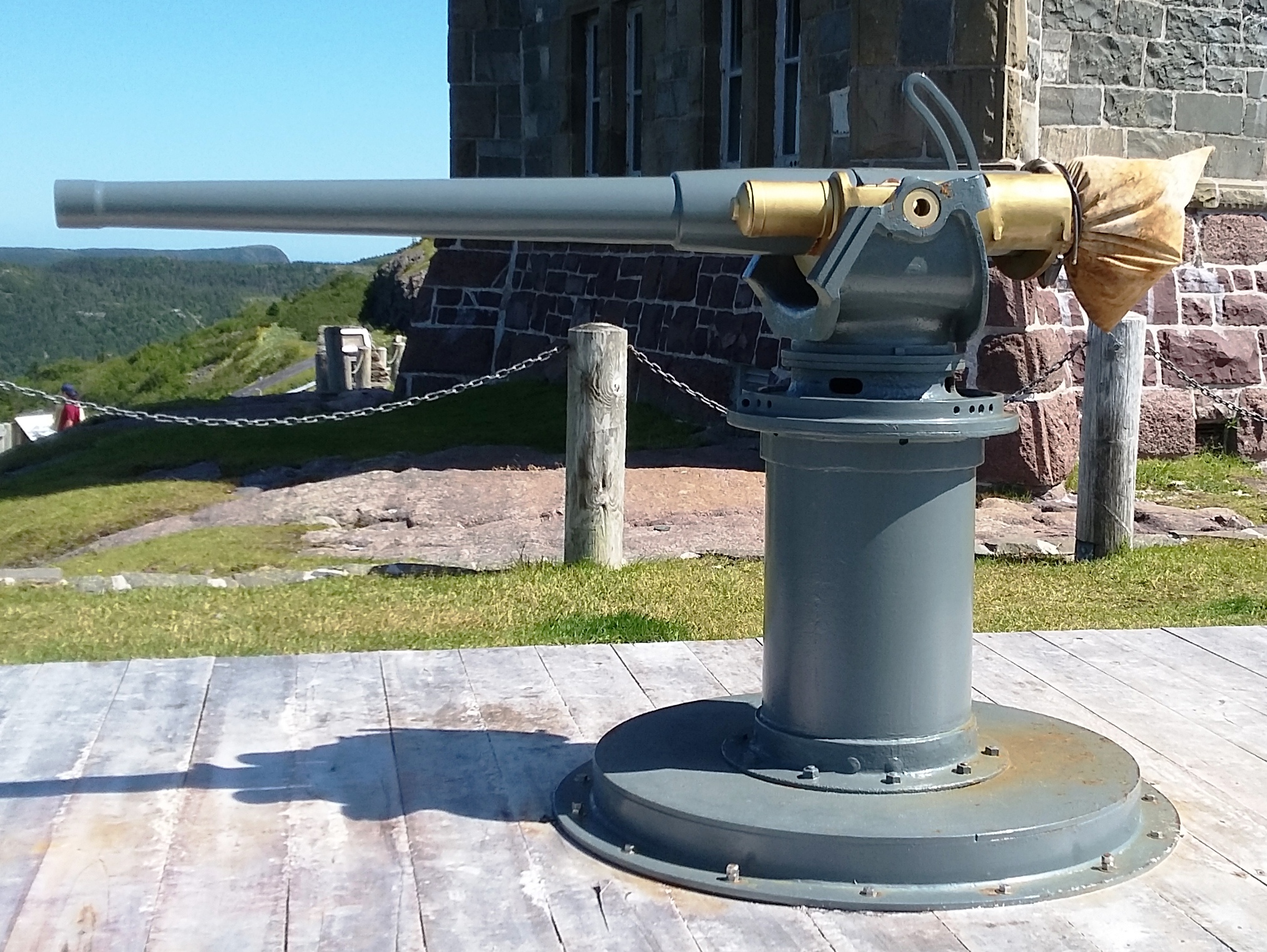 3-pounder QF Hotchkiss Gun, next to Cabot Tower on Signal Hill, Parks Canada. It serves as the Noon Day Gun at Signal Hill, a tradition that dates back to at least the 19th century. This Hotchkiss Gun was originally mounted on board HMS Calypso, where it was used for gunnery practice by the Newfoundland Royal Naval Reserve. During the summer, this gun is fired daily to signal the hour of Noon to the citizens and visitors of St. John’s.