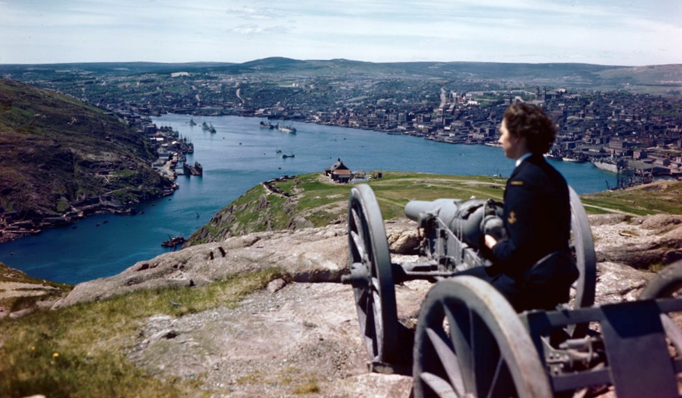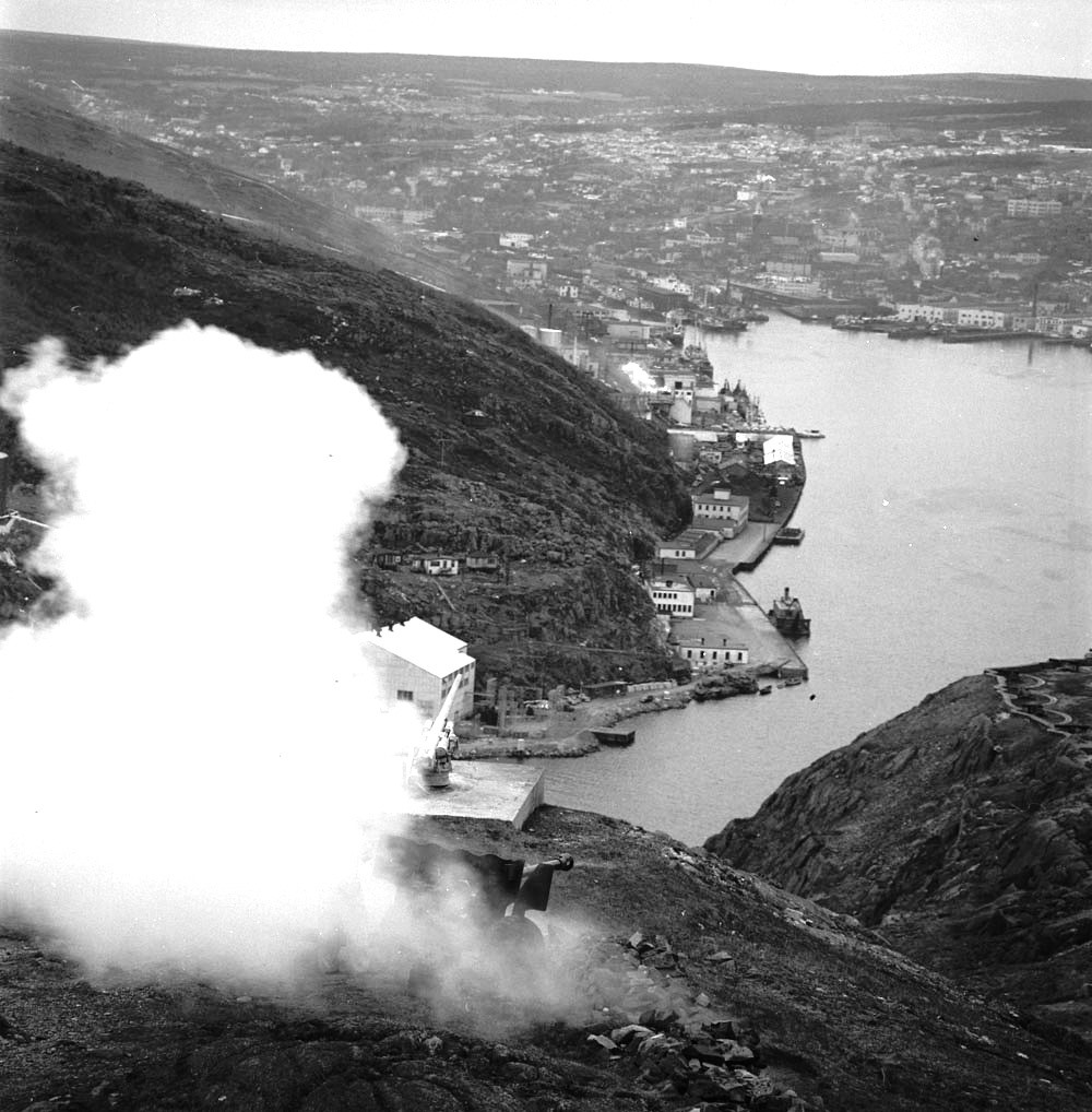 Blomefield Cast Iron 18-pounder 42-cwt Smoothbore Muzzleloading Gun, overlooking St. Johns Harbour, 1948.