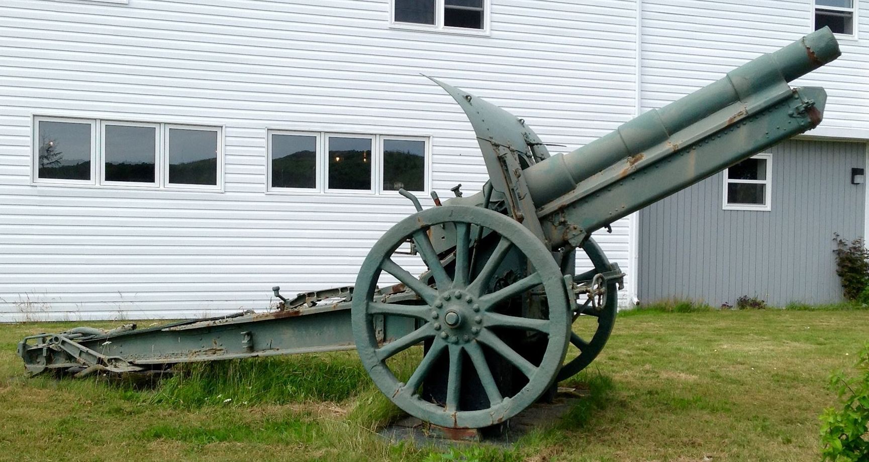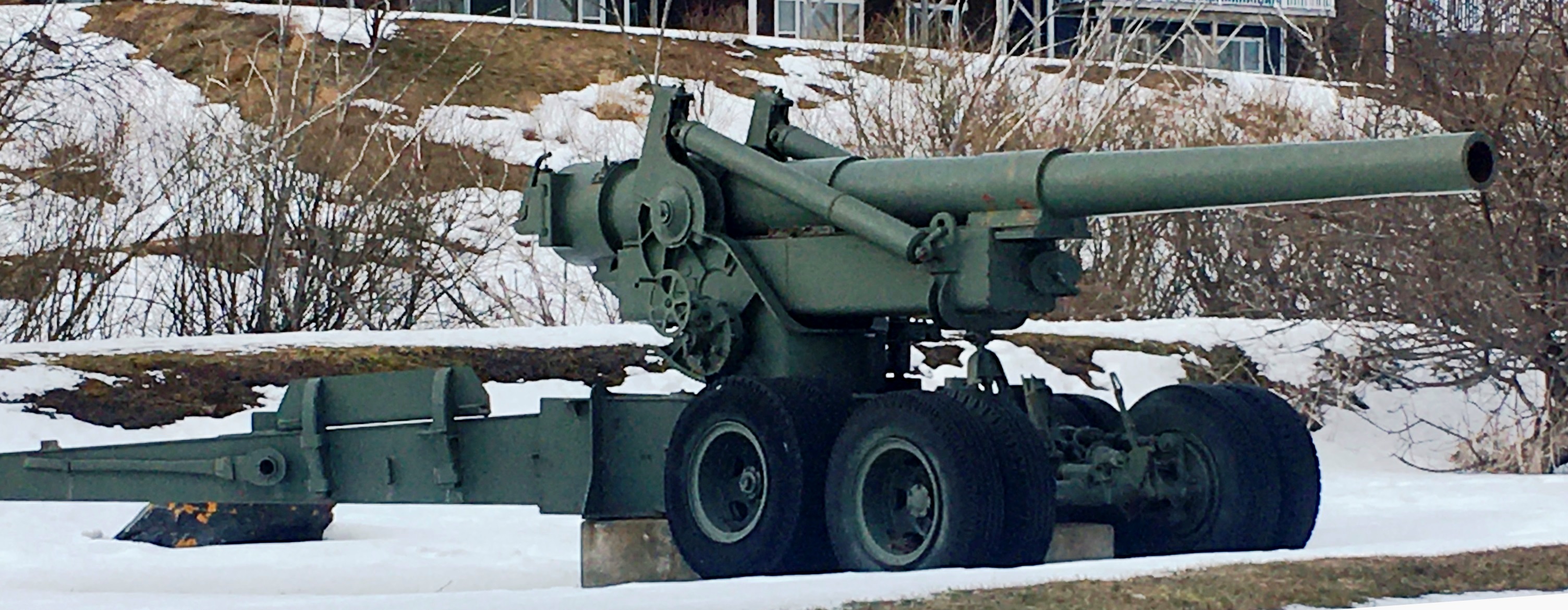 American 155-mm American M2 Gun “Long Tom” on Mk. I Carriage. This 7-foot 2-inch long Heavy Gun came from Woolwich Artillery Park in the UK. It is one of only three survivors. Veterans of the 59th (Newfoundland) Heavy Regiment arranged for the Gun to brought to Newfoundland. The Gun has been restored and repainted under Nelson Sherren`s direction.