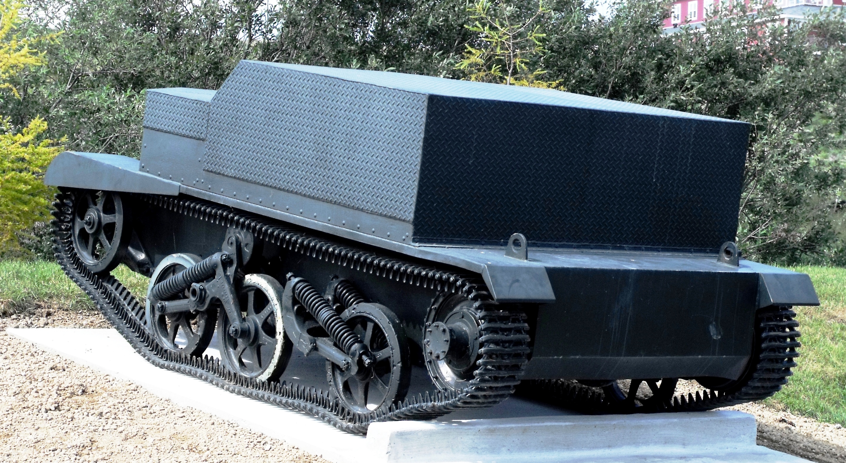 The top section of this Universal Carrier is completely enclosed. This vehicle was purchased from a local owner by Nelson Sherren and 3 others and restored by Metal World. This unit was one of many used by the Lincoln and Welland Regiment from Sarnia, Ontario, in the defence of the Airport and the Avalon Peninsula in the Second World War.