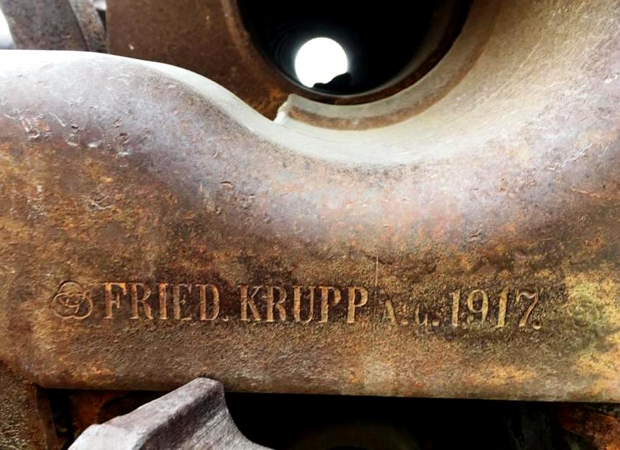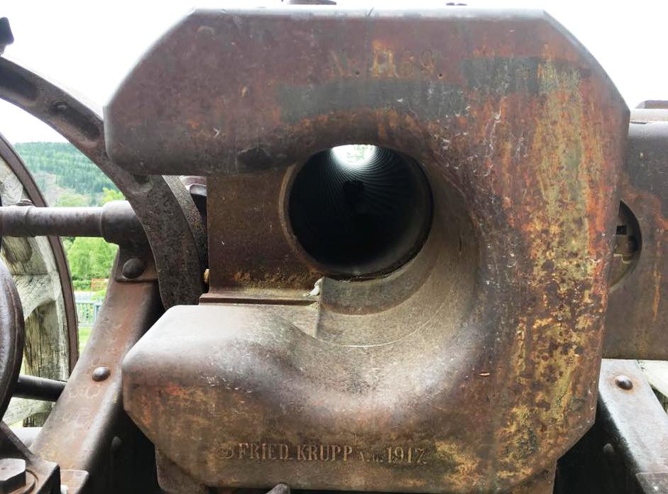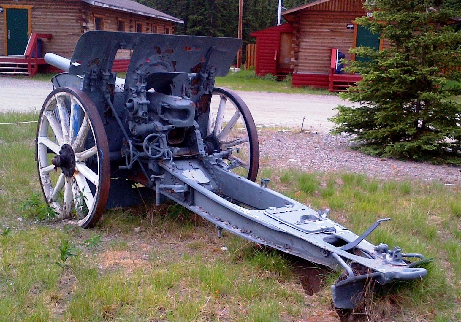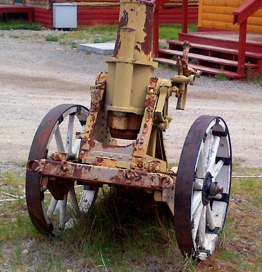 German First World War 7.7-cm Feldkanone 16 (7.7-cm FK 16) Field Gun (Serial Nr. 7414). This gun was captured on 27 Sep 1918 by the 102nd Battalion (Central Ontario), 11th Infantry Brigade, 4th Canadian Division, Canadian Expeditionary Force (CEF), West of Bourlon Wood, during the battle of Canal du Nord, France. The gun was originally allocated to Dawson City. This gun is located 13 km SE of Whitehorse at the Cadet Camp by Mary Lake. (Photos courtesy of LCol Bruce Kiecker)