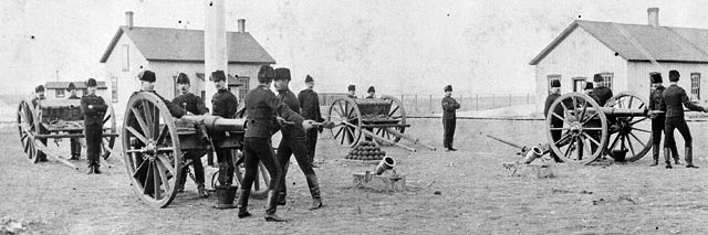 9-pounder 8-cwt Muzzleloading Rifles operated by the NWMP Artillery Detachment, D & H Divisions with Fort MacLeod, Alberta, 17 Dec 1890.