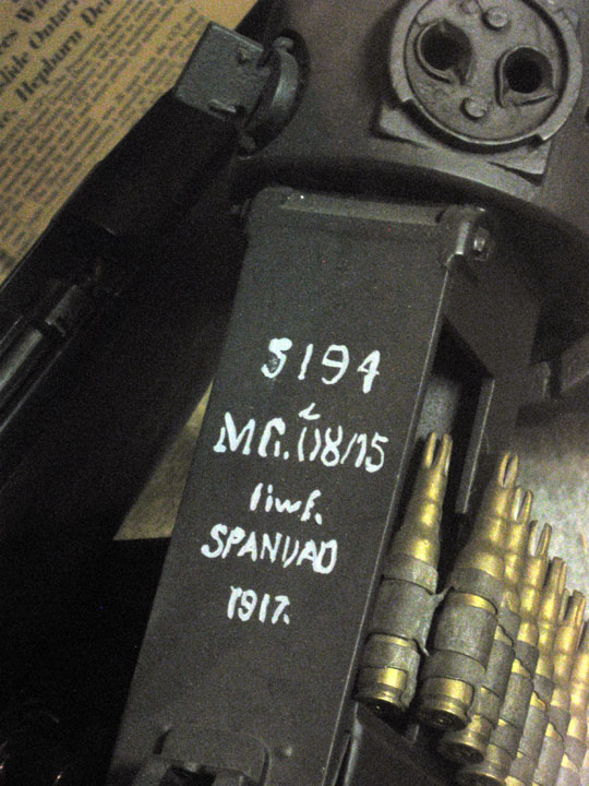 German First World War 7.92-mm Maxim Spandau MG 08/15, (Serial Nr. 5194), captured by the 2nd Canadian Division of the Canadian Expeditionary Force (CEF) , originally allocated to Blairmore, Alberta.