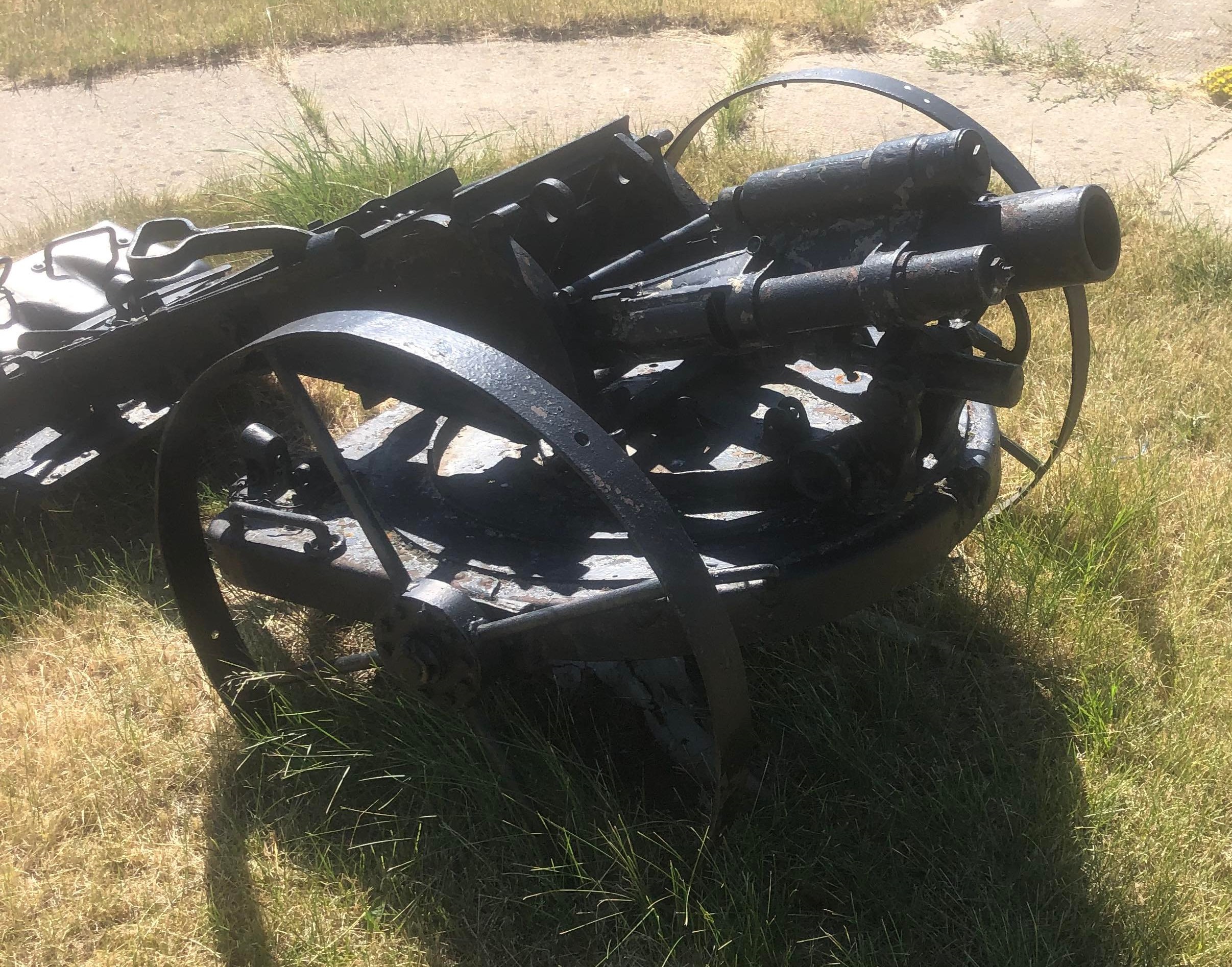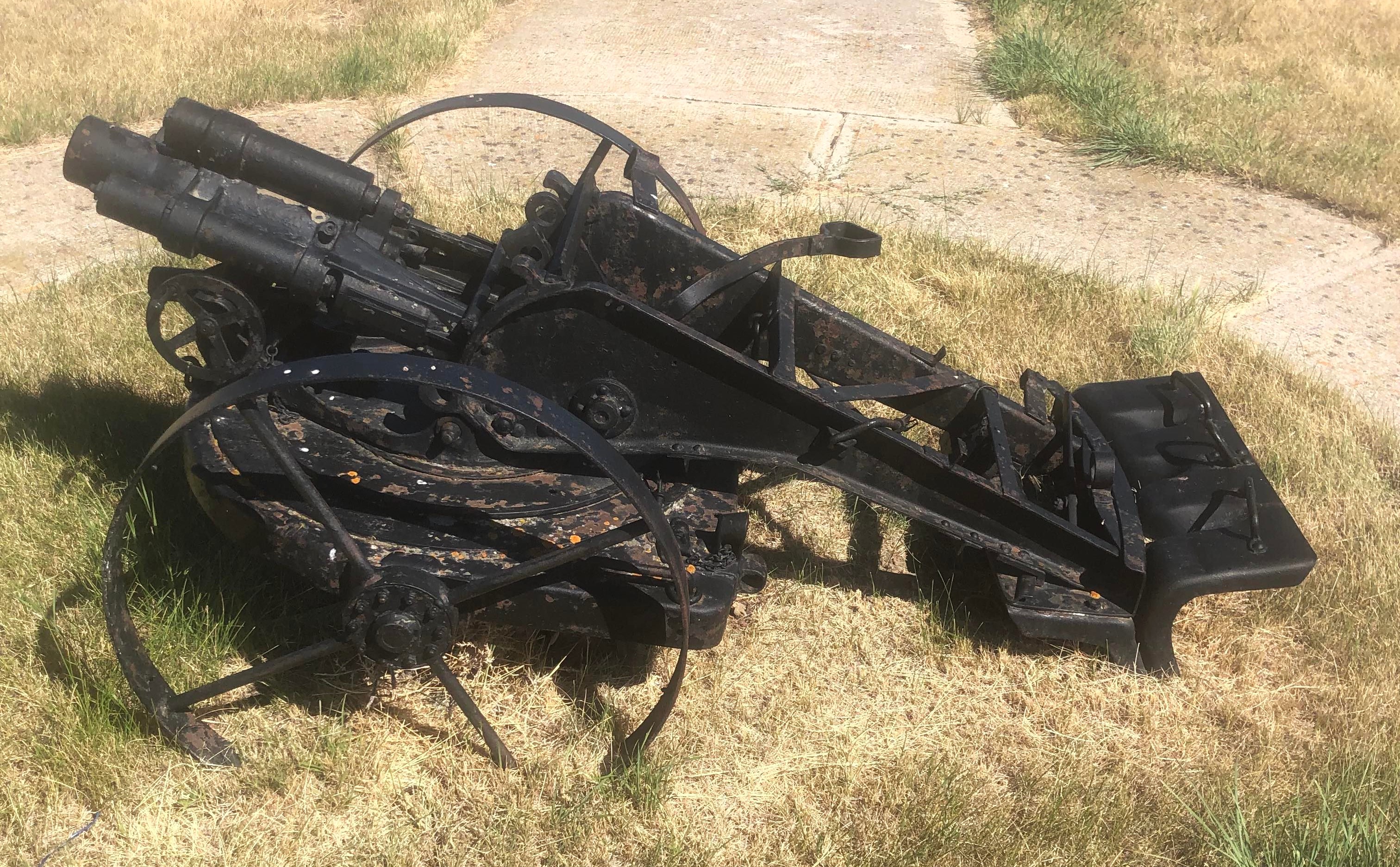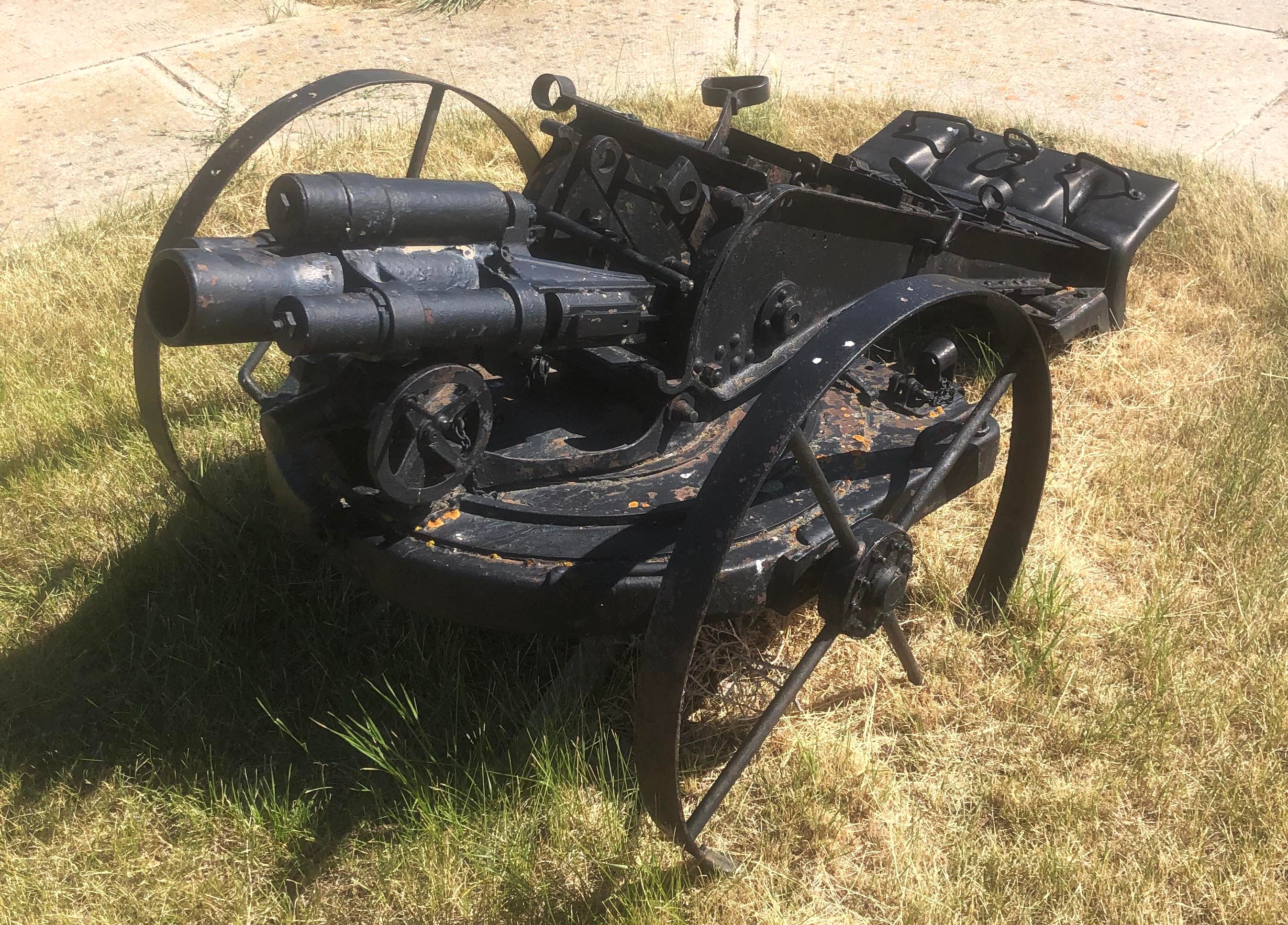 An Anti-Aircraft Gun wheel assembly is on base, possibly for the 3.7-inch C Mk. 2/2 AA Gun, likely from the Air Defence unit originally assigned to protect the airfield at CFB Cold Lake.