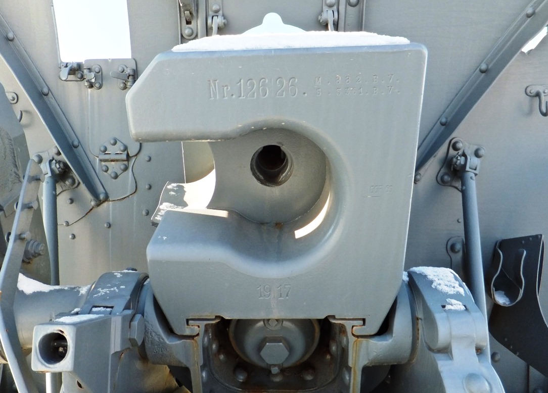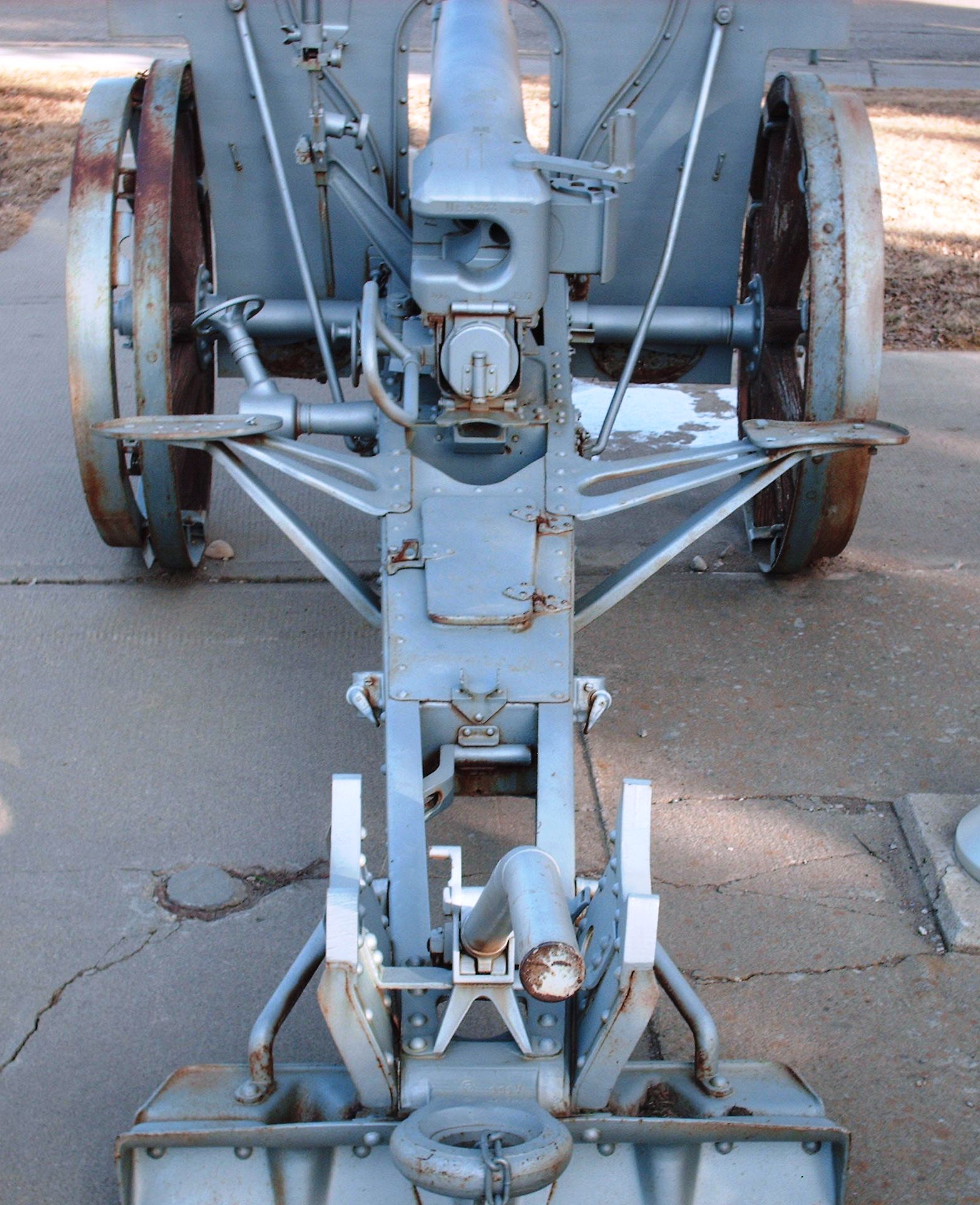 The 7.7cm IG (Infanteriegeschutz) L/27 was Krupp’s third attempt at building an infantry support gun which could closely follow the infantry in attack and provide close support and anti-tank fire in defence. The gun was extensively modified compared to the standard field gun. From observation some of the changes are: 1. the wheel diameter was reduced to about 1m. 2. the wheel track was reduced by about 30cm. 3. the axle was moved back about 30cm. 4. no axle tree seats were fitted. 5. the gun shield was designed so it could be removed easily and was narrower. 6. the cover over the recuperator spring adjuster was enlarged and hinged (the barrel could be removed by unlocking the spur under the barrel from the recoil assembly). 7. the gunner’s and loader’s seat brackets were a different design so they could be quickly removed. 8. there are brackets at the end of trail which originally held a counterweight required because the gun unbalanced because the axle had been moved back. 9. the spade is a different profile. Charlie Clelland.