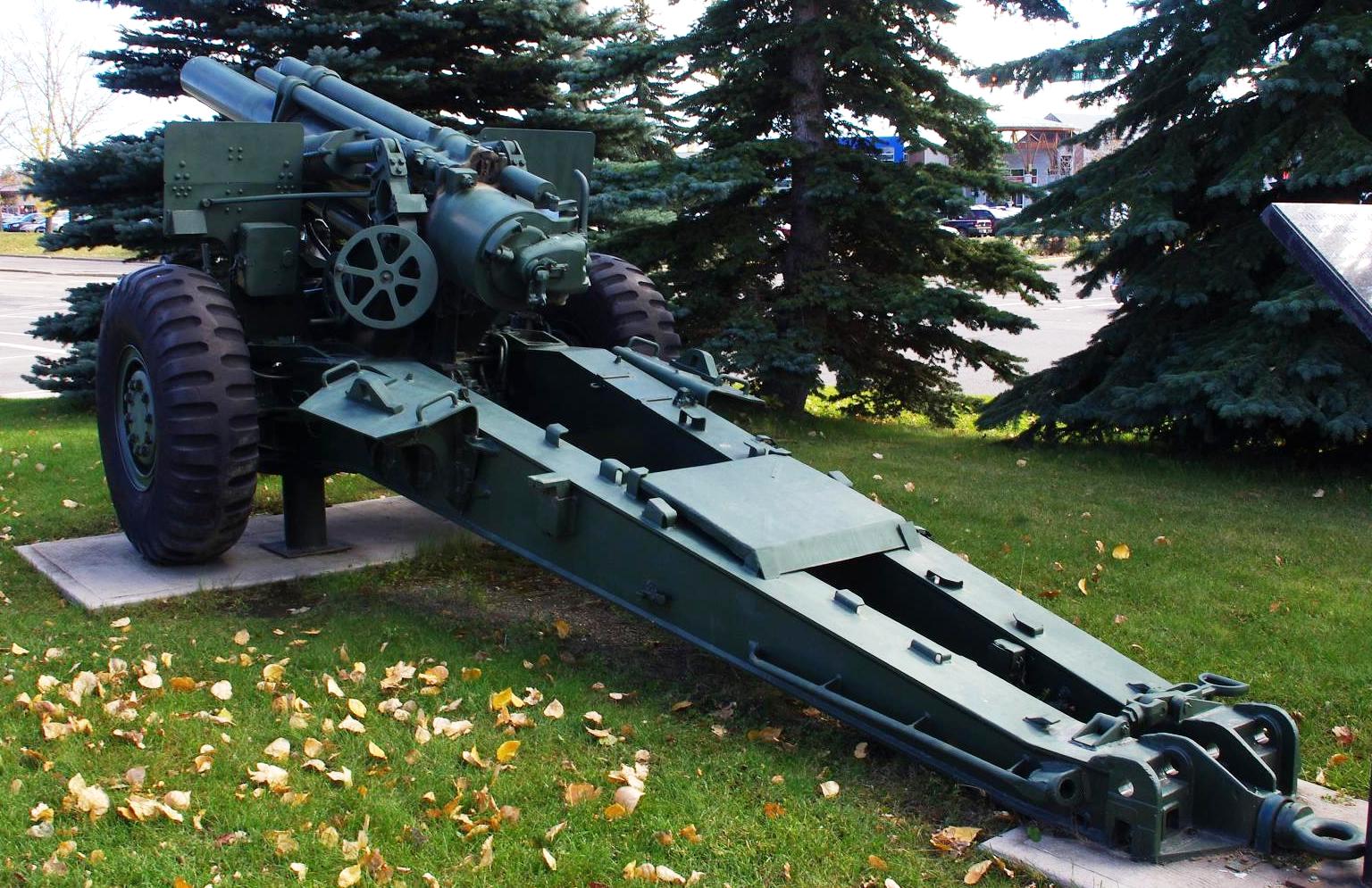 155-mm C1 (M1A2) Medium Howitzer on M1A2 Carriage, aka M114, manufactured at Sorel Industries Limited in Quebec, Queen Elizabeth II cypher. (Library and Archives Canada Photo, MIKAN No. 4235871)