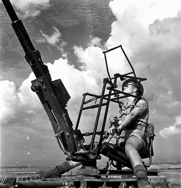 20-mm Oerlikon AAGun manned by a soldier of the Saskatoon Light Infantry (MG), Spinazzola, Italy, 1 Oct 1943.