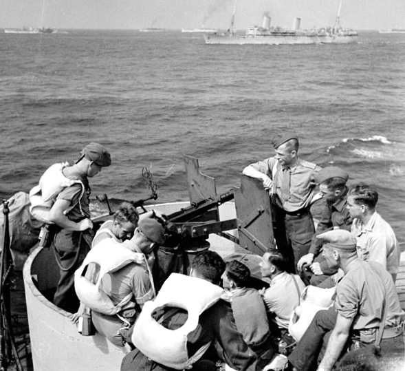 Personnel of a Canadian Highland regiment receiving training about the Oerlikon 20-mm gun aboard the troopship HMT Nea Hellas en route to Philippeville, Algeria, 5 July 1943.