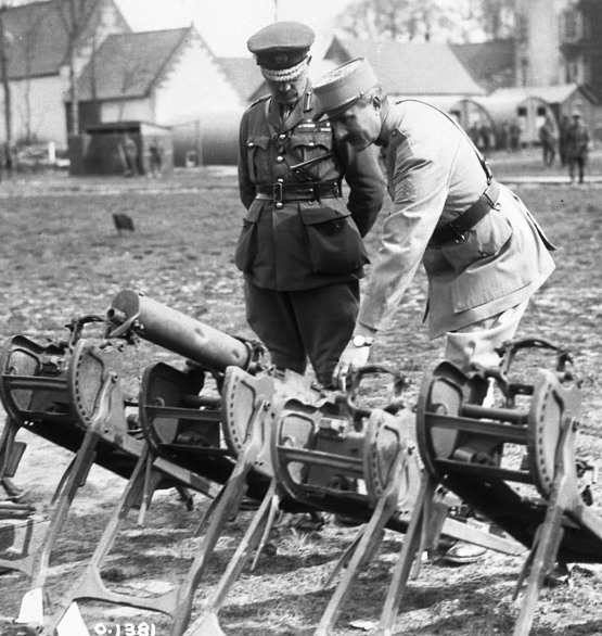German Great War 7.92-mm Maxim Spandau MG 08s being examined by Canadians in France, May 1917.