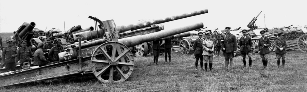 General Currie inspecting captured German Great War Naval Guns, ca 1918. (Library and Archives Canada Photos, MIKAN No. 3397923)