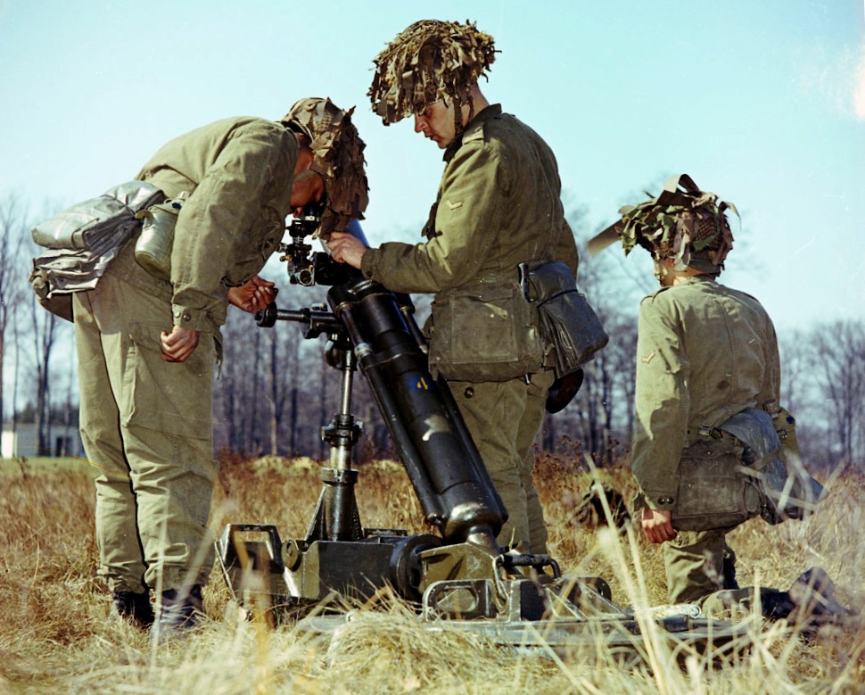 Canada first established a Parachute Battery in 1949 in Shilo. It was initially equipped with the M1 75mm Pack Howitzer and the British 4.2″ Smooth Bore (4.2″ SB) Mortar. The 4.2 Inch SB Mortar went out of service in 1950 and was replaced by the two models, including the M30 4.2″ Rifled Mortar.