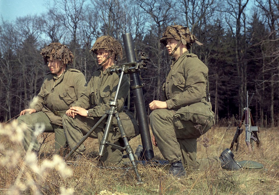 4.2-inch M107 Mortar, 1st Battalion, The Royal Canadian Regiment, 4 CMBG, Germany, ca 1963. Operated by a six-man detachment, the M107 4.2-inch mortar was employed by “L” Battery of the 4th Regiment, Royal Canadian Horse Artillery, from 1964 until 1969, when it was replaced by the L5 pack howitzer. The Battery had eight mortars to sustain the airportable support role necessary for Canada’s Allied Mobile Force commitments.
