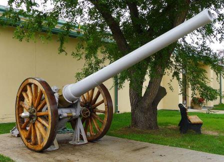 4.7-inch QF Mk. IV* “B” Gun on Mk. I Travelling Carriage, Shilo Golf Course.  The BL 4.7 inch 45 calibres gun (actually a metric 120-mm gun) was a British medium-velocity naval gun introduced in 1918 for destroyers, intended to counter a new generation of heavily armed destroyers that Germany was believed to be developing.