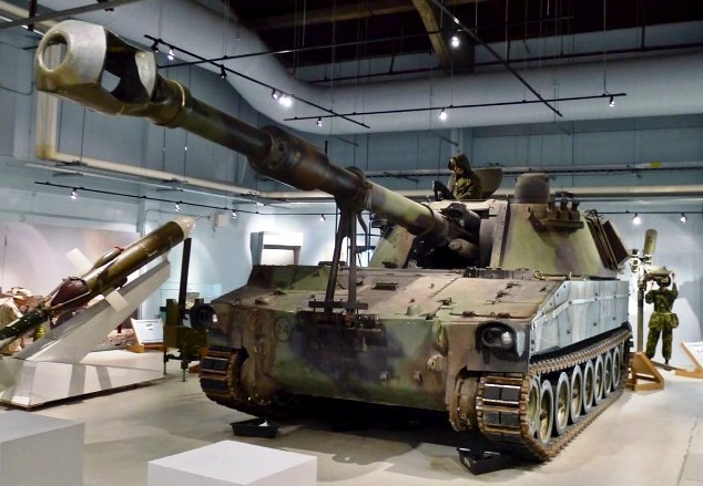 155-mm M109 Self-Propelled Howitzer, (Reg. No. 34838), 1968, AC: MD, ECC: 119205 HUI C: 0118, SAUI C: 0118, VMO No. DLE21739, VMO Date: 14 Jul 2005.   Inside the Museum.