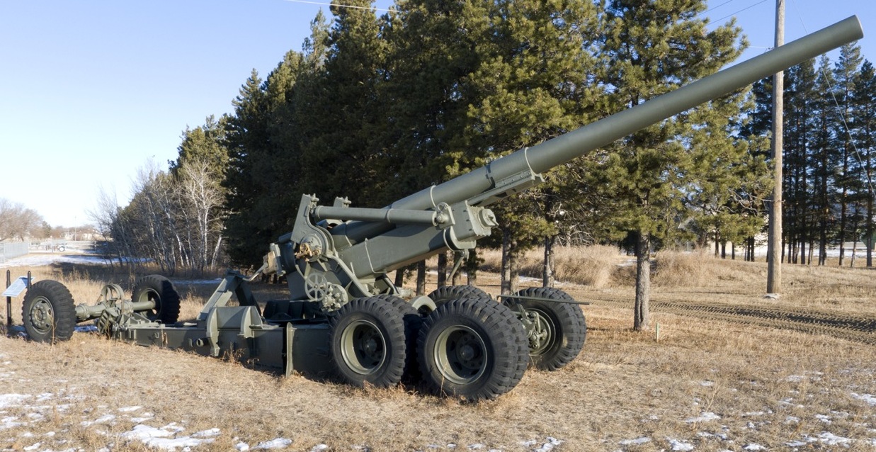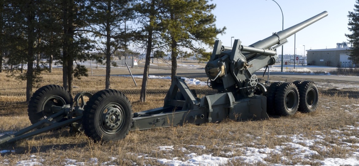 American 155-mm M2 Gun “Long Tom” on Mk. I Carriage.  Two batteries of the 59th (Newfoundland) Heavy regiment used these guns during the campaign in Northwest Europe.  Canada purchased 20 of them post-war, but only two were actually used, the rest were put in storage.