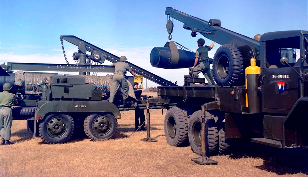 762-mm M31/M50 Honest John Rocket team with M33 launcher trailer set-up and in operation.