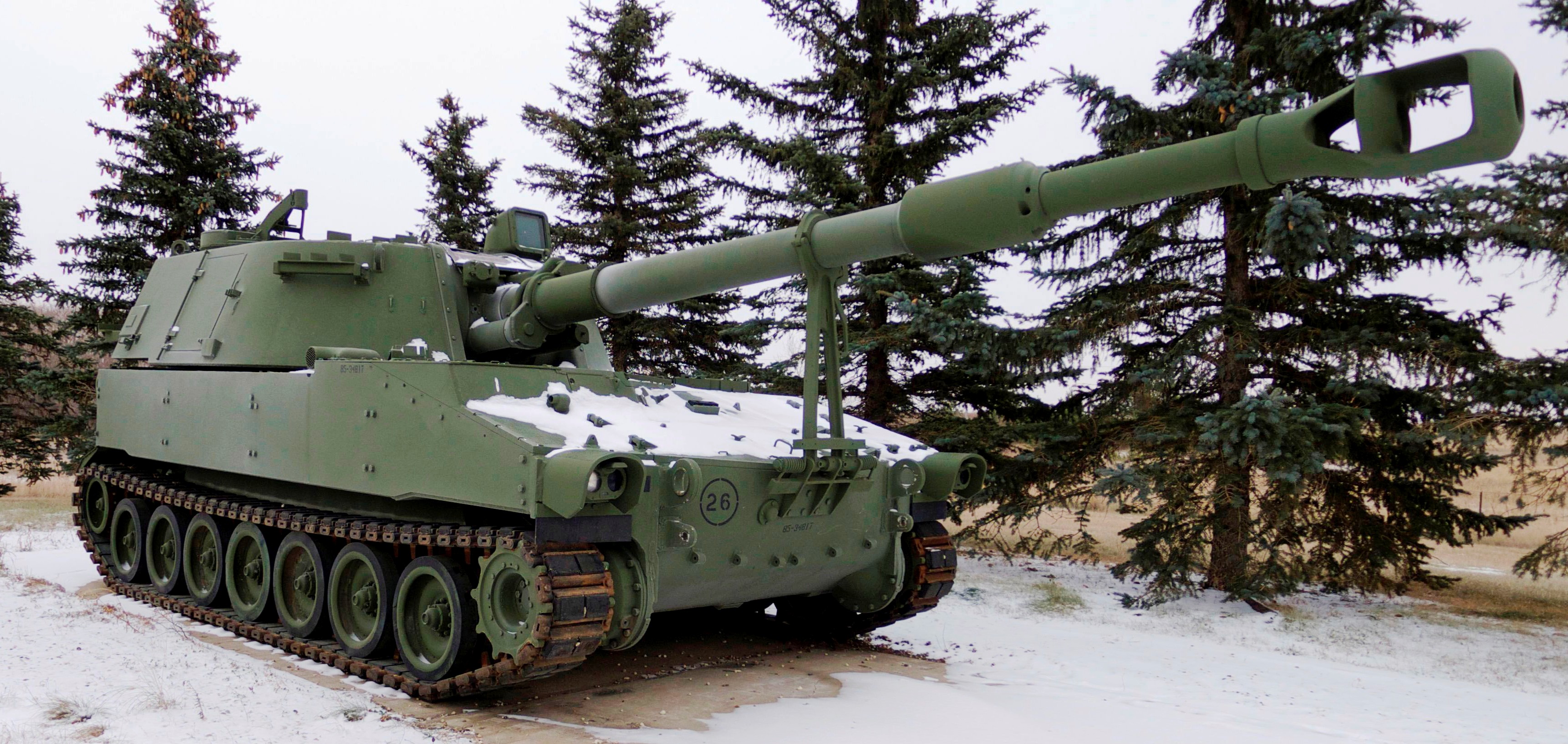 155-mm M109 Self-Propelled Howitzer, (Reg. No. 85-77245), 1985, AC: MD, ECC: 119205 HUI C: 0118, SAUI C: 0118, VMO No. DLE21739, VMO Date: 14 Jul 2005.  Display Monument.