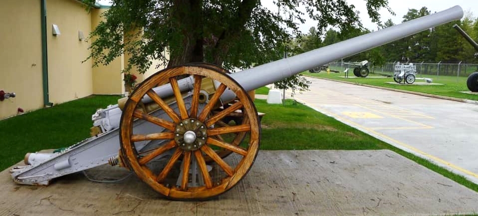4.7-inch QF Mk. IV* “B” Gun on Mk. I Travelling Carriage, Shilo Golf Course.  The BL 4.7 inch 45 calibres gun (actually a metric 120-mm gun) was a British medium-velocity naval gun introduced in 1918 for destroyers, intended to counter a new generation of heavily armed destroyers that Germany was believed to be developing.