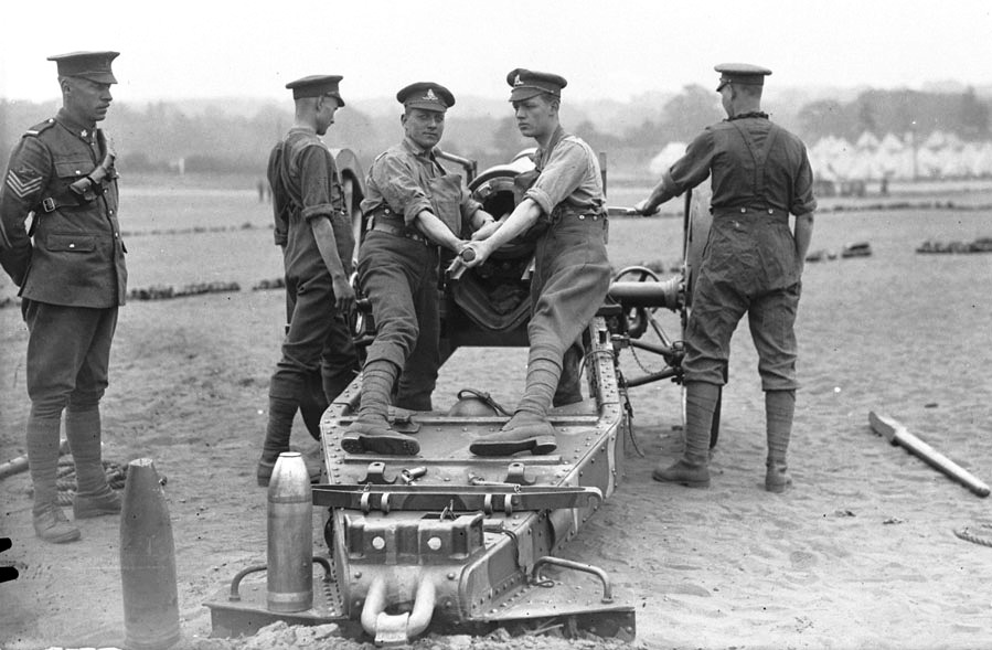 Canadians training on heavy guns, Whitley Camp, England, 1917.