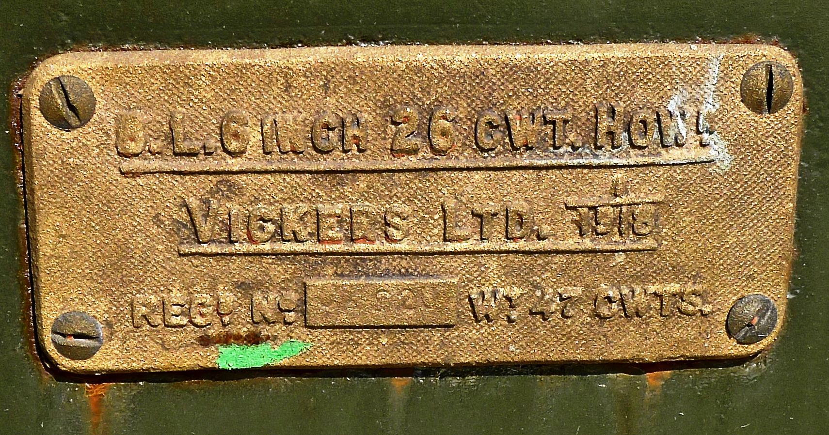 6-inch 26-cwt Breechloading Mk. I Howitzer manufactured at W.B & Co No 5281 in 1918.  It is mounted on carriage No. CA920.  This gun is one of two in Canada, the other is with 3 Field Regiment in Saint John, New Brunswick.