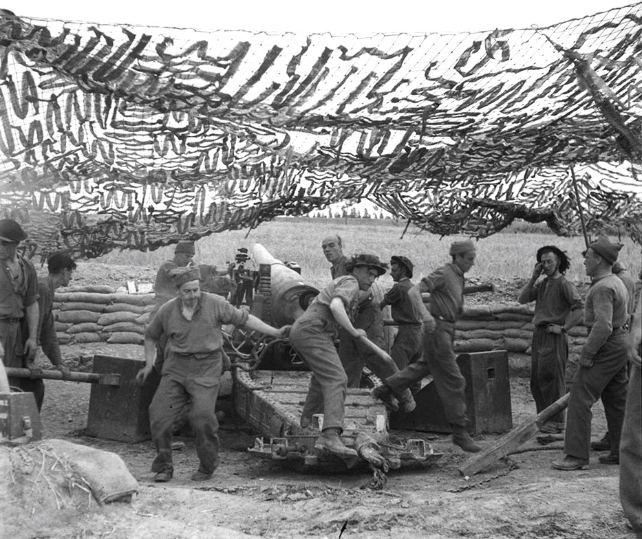 7.2-inch howitzer being fired on German positions, 28 June 1944.