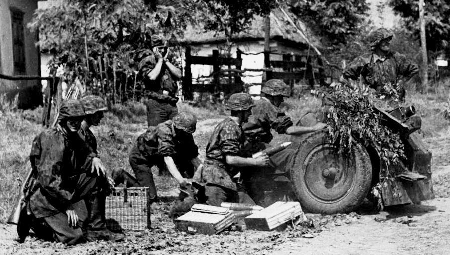 German SS gunners man a 7.5-cm leichtes Infanteriegeschütz 18 Light Infantry Gun (7.5-cm leIG 18) during the Battle of Uman, Cherkasy Oblast, Ukraine, Soviet Union. 18 August 1941. (German Wehrmacht Photo)