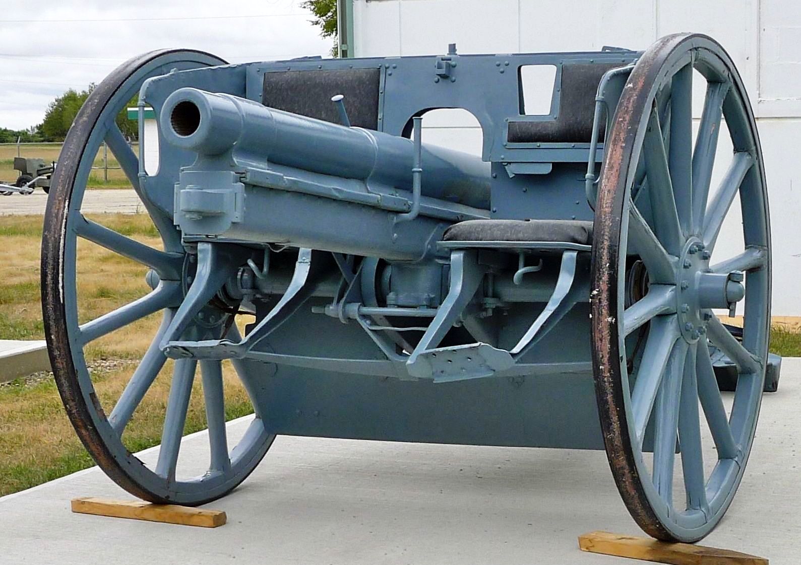 The 7.7 cm Feldkanone 96 neuer Art (7.7 cm FK 96 n.A.) is a German field gun. The gun combined the barrel of the earlier 7.7 cm FK 96 with a recoil system, a new breech and a new carriage. Existing FK 96s were upgraded over time. The FK 96 n.A. was shorter-ranged, but lighter than the French Canon de 75 modèle 1897 or the British Ordnance QF 18 pounder gun; the Germans placed a premium on mobility, which served them well during the early stages of World War I. However, once the front had become static, the greater rate of fire of the French gun and the heavier shells fired by the British gun put the Germans at a disadvantage. The Germans remedied this by developing the longer-ranged, but heavier 7.7 cm FK 16. As with most guns of its era, the FK 96 n.A. had seats for two crewmen mounted on its splinter shield.