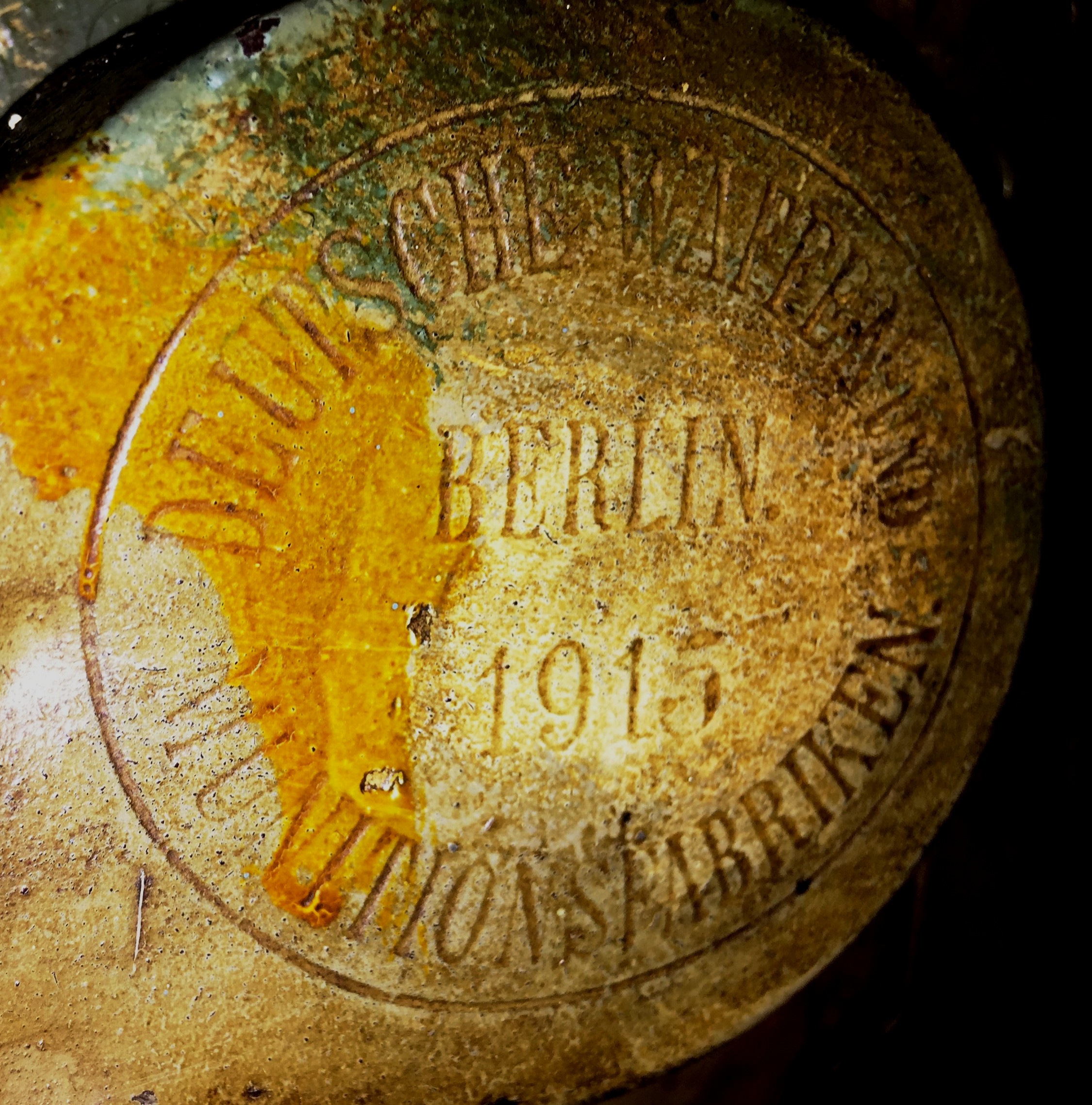 German First World War 7.92-mm MG 08 Machine Gun, (Serial Nr. 5113), Berlin 1915, mounted on a Schlitten stand.  Captured in France in 1918, this gun was originally allocated to South River, Parry Sound, Ontario.
