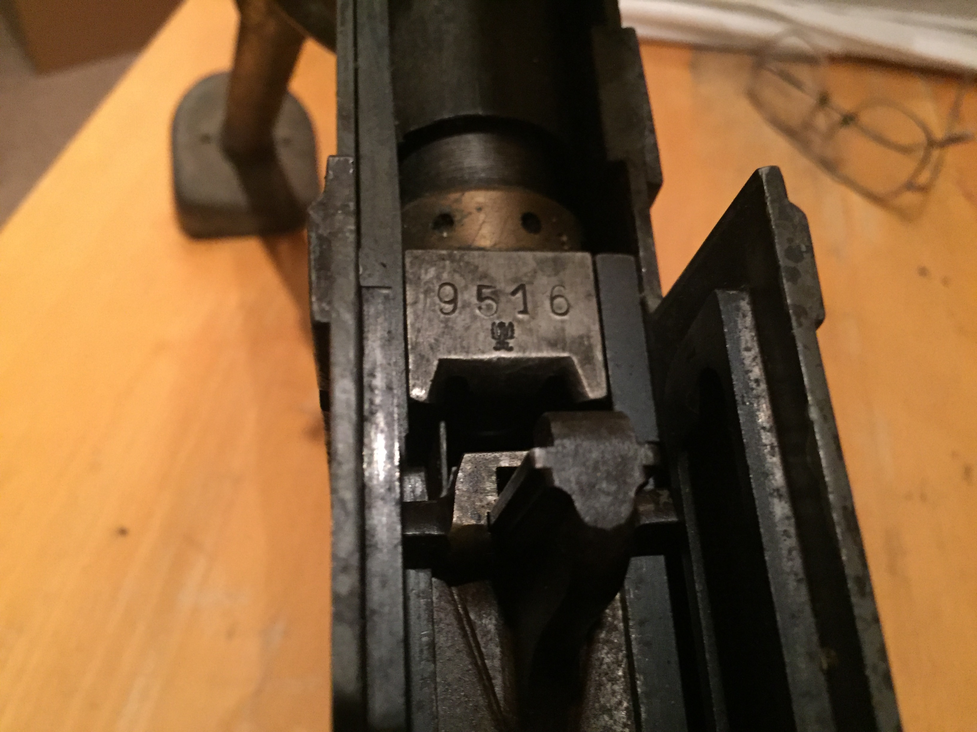 German First World War 7.92-mm MG 08/15 Machine Gun, (Serial Nr. 9516), MAN, Nurnberg, 1918.  Captured by the 8th Battalion (90th Winnipeg Rifles), 2nd Canadian Infantry Brigade, 1st Canadian Division, at Hatchet Wood, N. of Beaufort, France on 9 Aug 1918.  This MG08/15 was originally allocated to Pilot Mound, Manitoba.