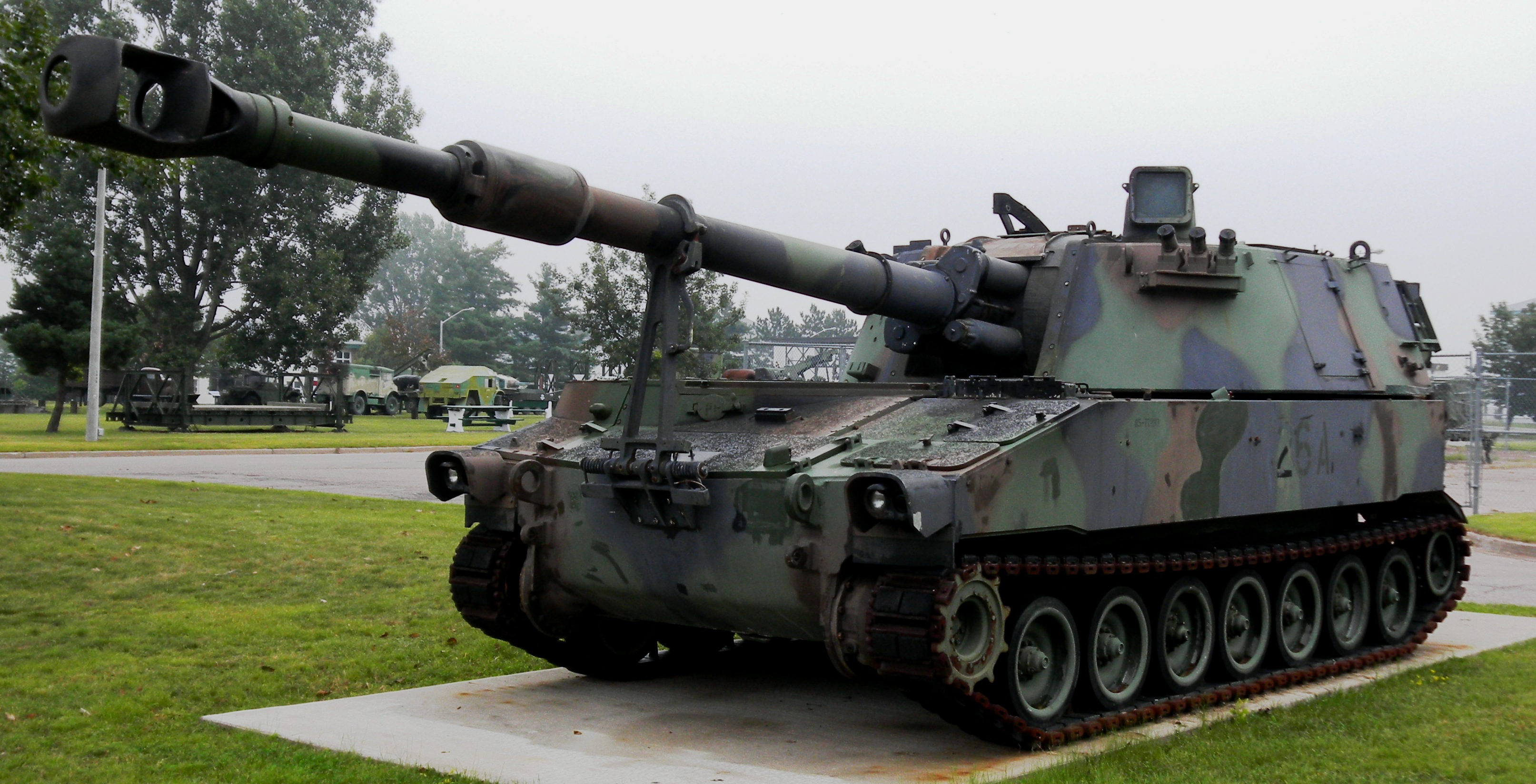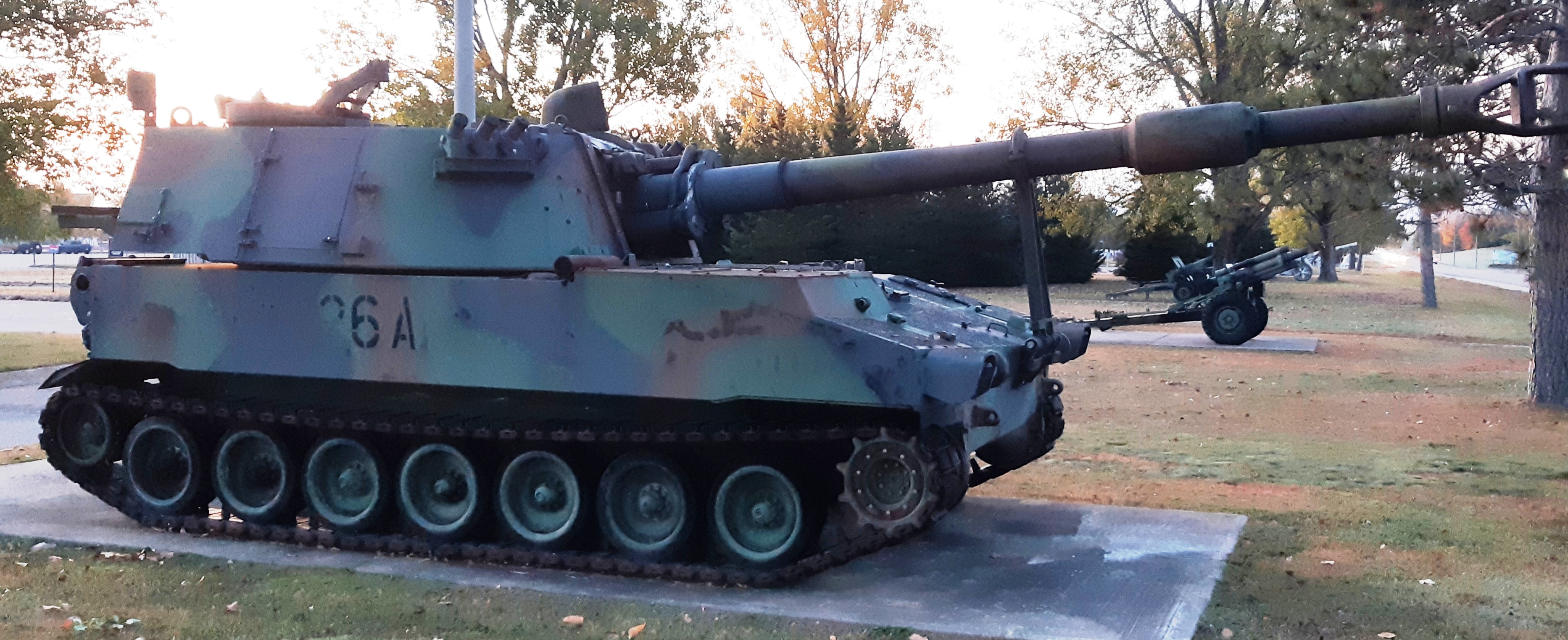 155-mm M109 Self-Propelled Howitzer, (Serial No. 77233), 1985, AC: CX, ECC: 119205 HUI C: 1764, SAUI C: 1764, VMO No. DLE21804, VMO Date: 24 Jul 2005.  Display Monument.  â€œ26A”, the 1st Gun, 2nd troop, 2nd Battery, Menin Road.