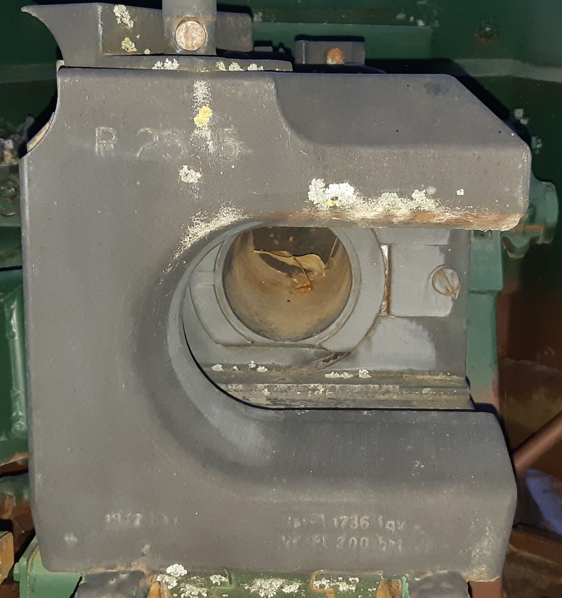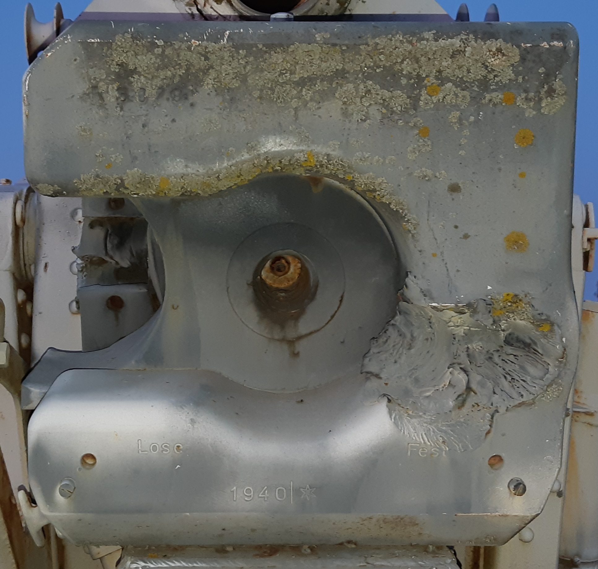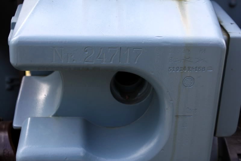 German Second World War 15-cm schwere Feldhaubitze 18 Heavy Field Howitzer (15-cm sFH 18), (Serial Nr. R3079), shell strike on the remaining numbers on the breeching ring, Menin Road.
