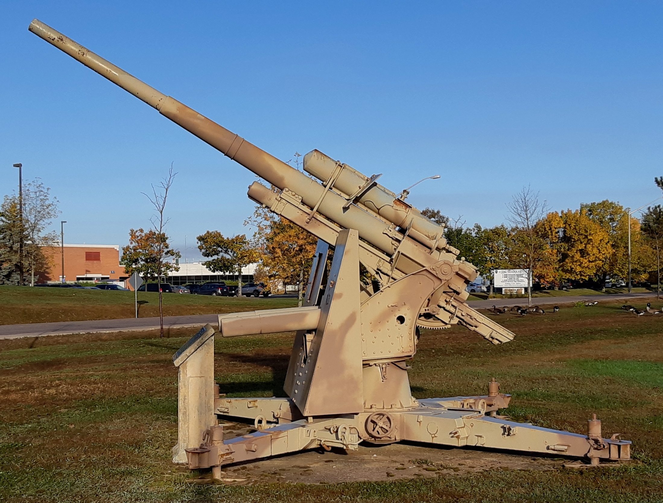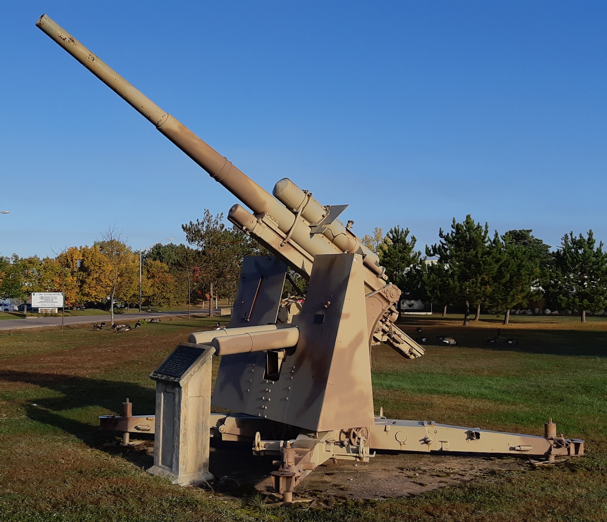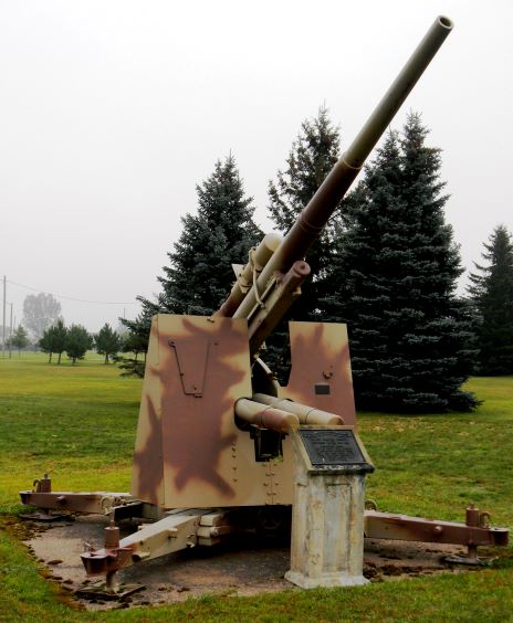 German Second World War 8.8-cm FlaK 37 AA Gun, (Serial Nr. R3864), stamped BS: Sg563492 RL1084bxe F1318beb, M:F1317beb, S:F1317beb on the breeching ring, North of the Main Gate.