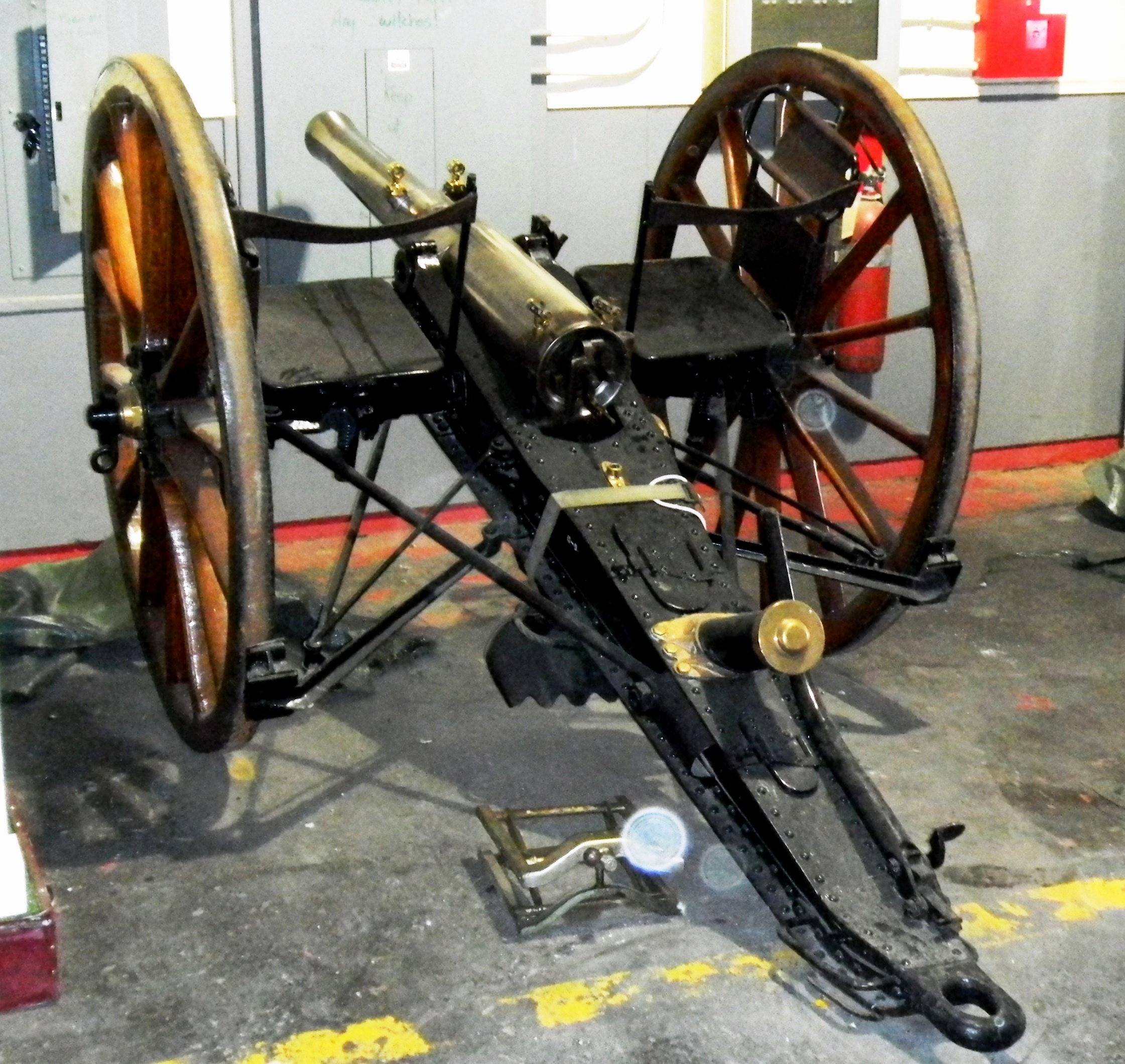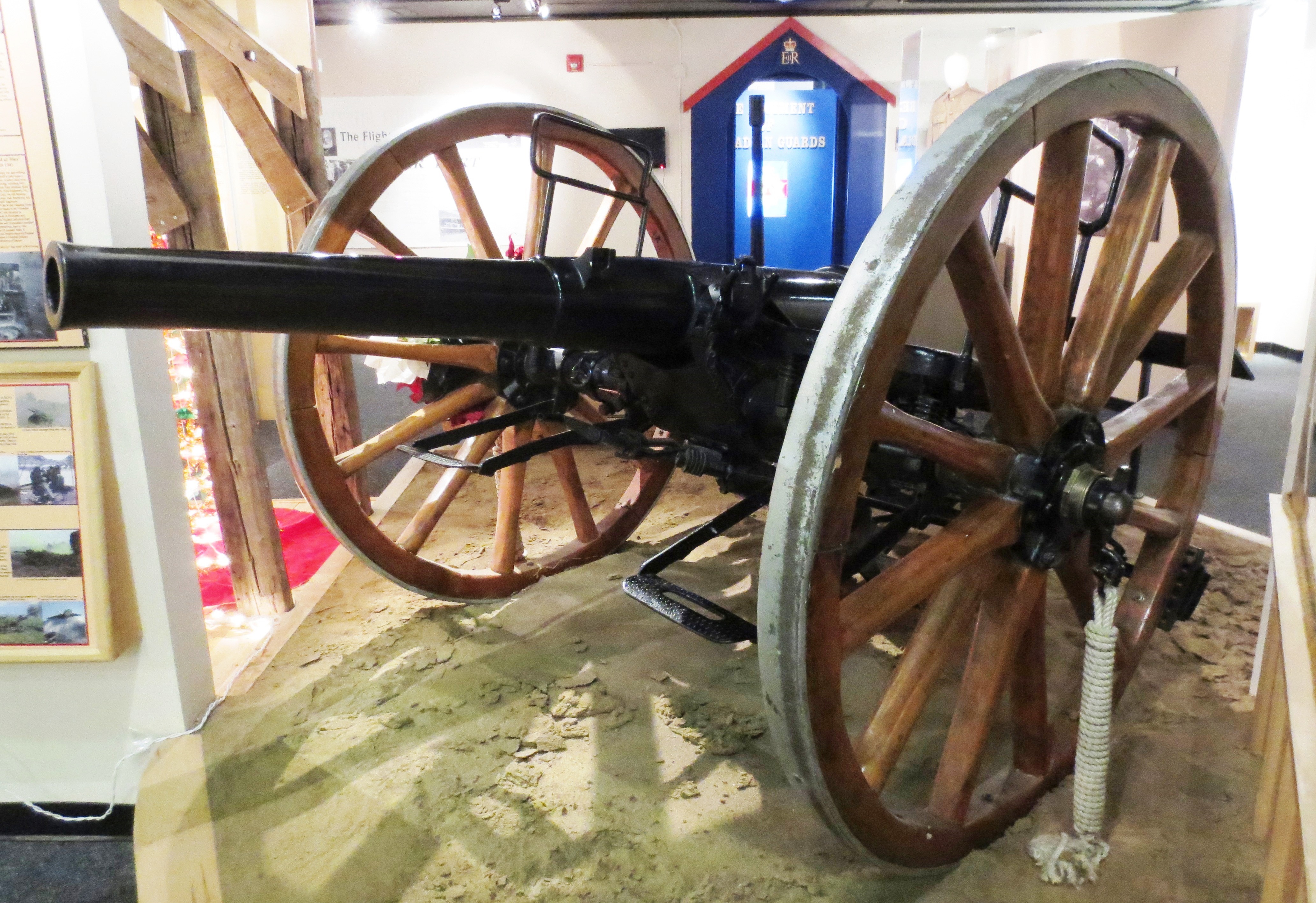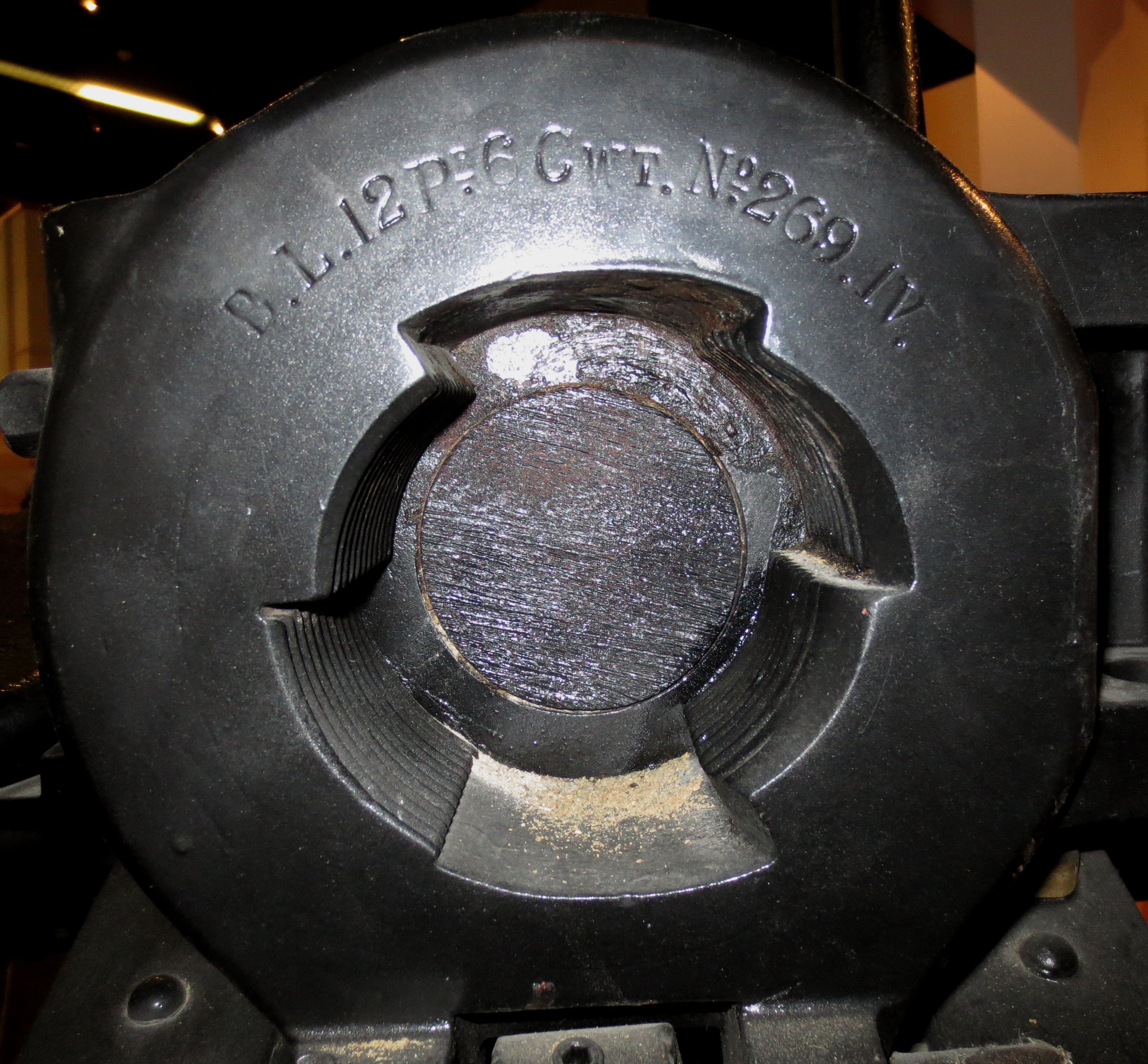 12-pounder 6-cwt Breechloading Mk. IV Gun, weight 8-1-9 (933 lbs), Serial No. 269, IV, inside the Base Museum, RCD Carriage No. 07816.