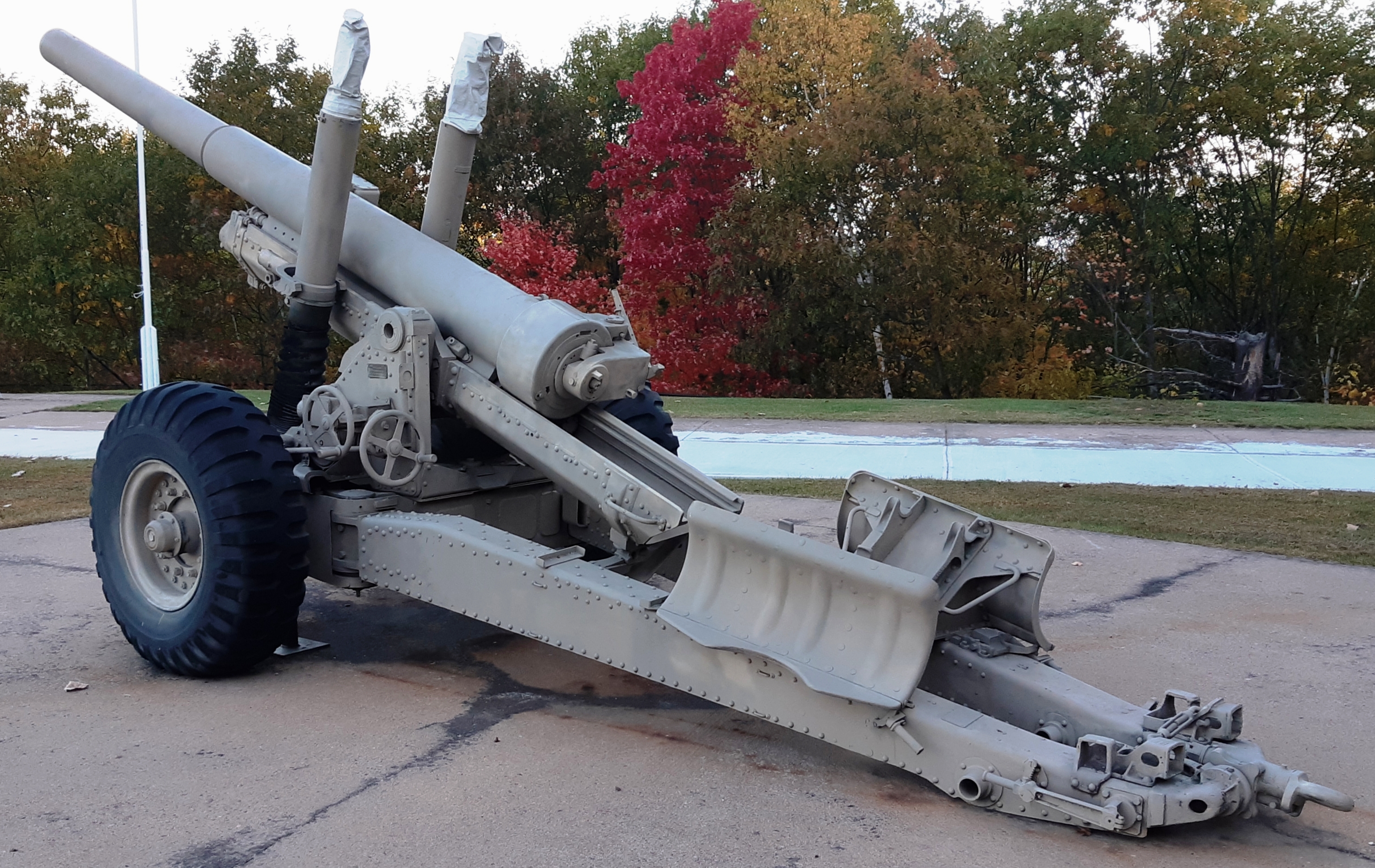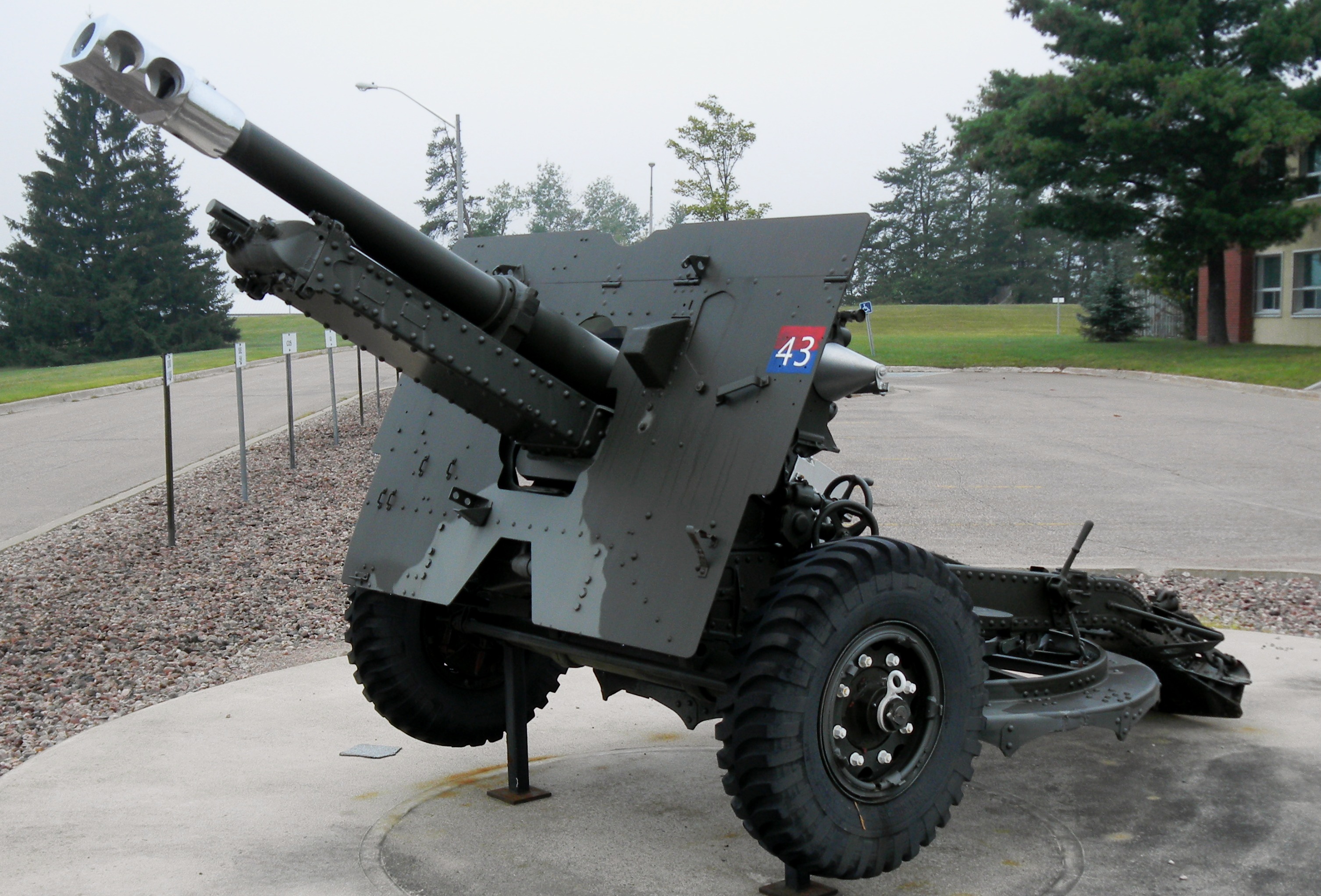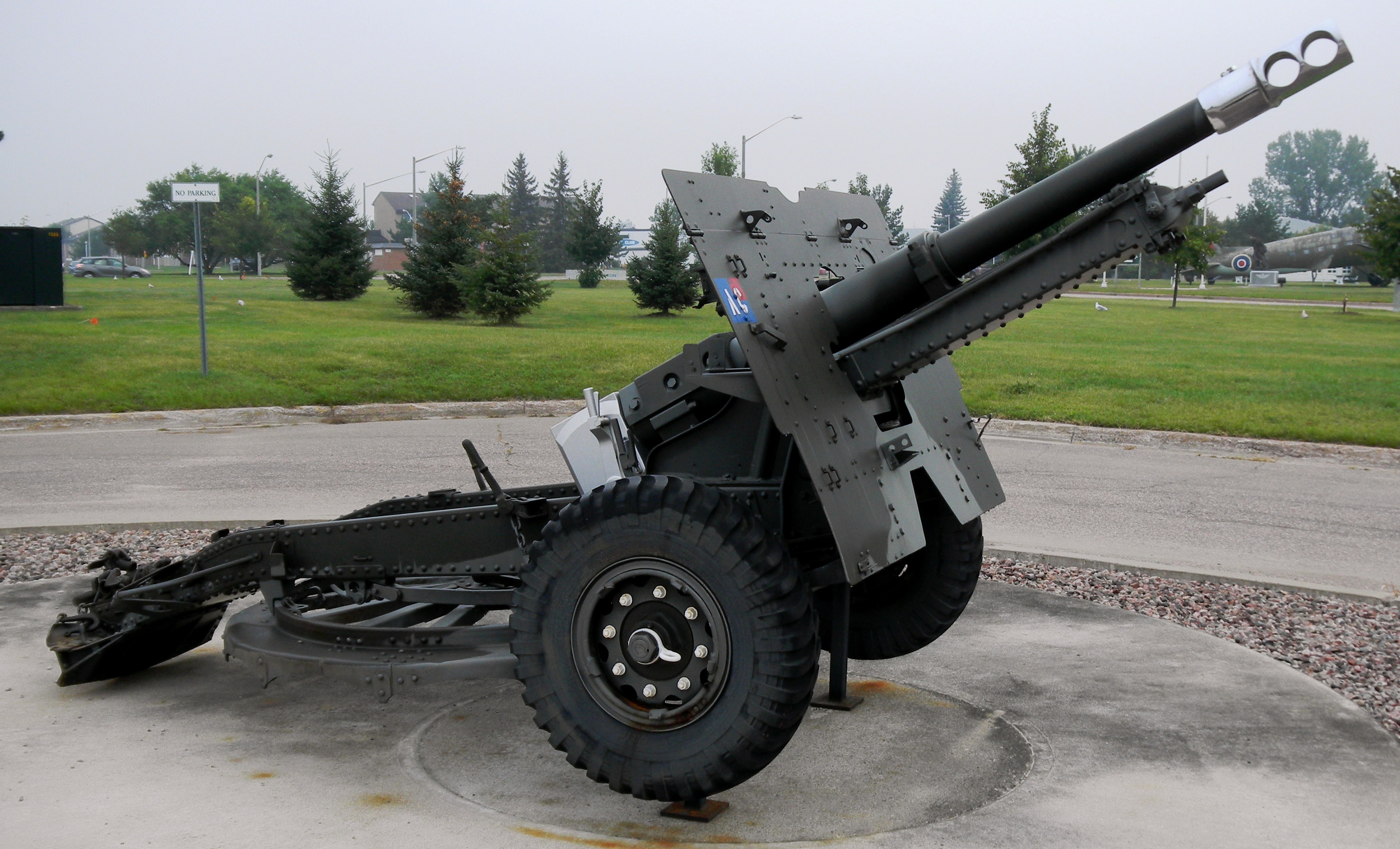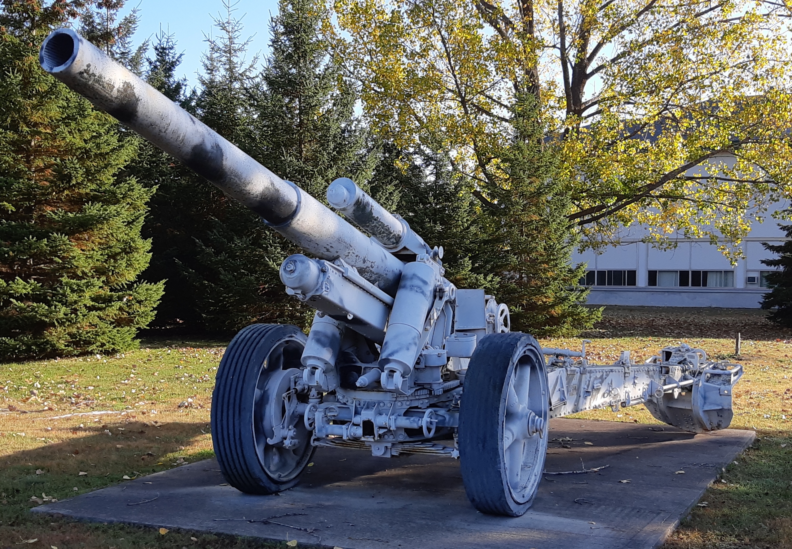 5.5-inch BL Mk. III Gun on a Mk. I Carriage, Artillery Park.  Canada made carriages for these guns during the Second World War, and after the war acquired 85 of them for the RCA.  The gun fired a 45.5-kg (100-pound) shell to a range of 14,800 metres (16,200 yards).