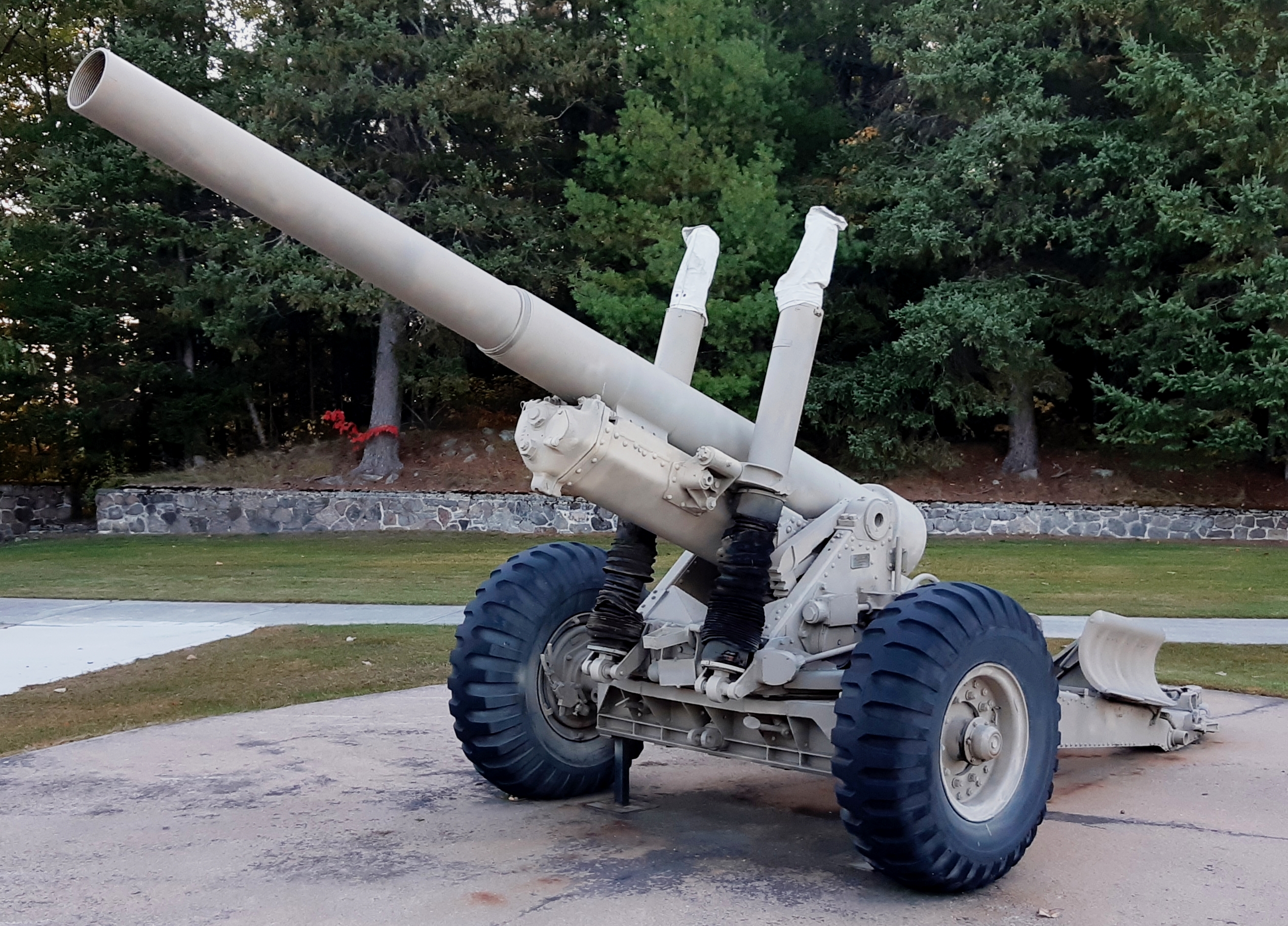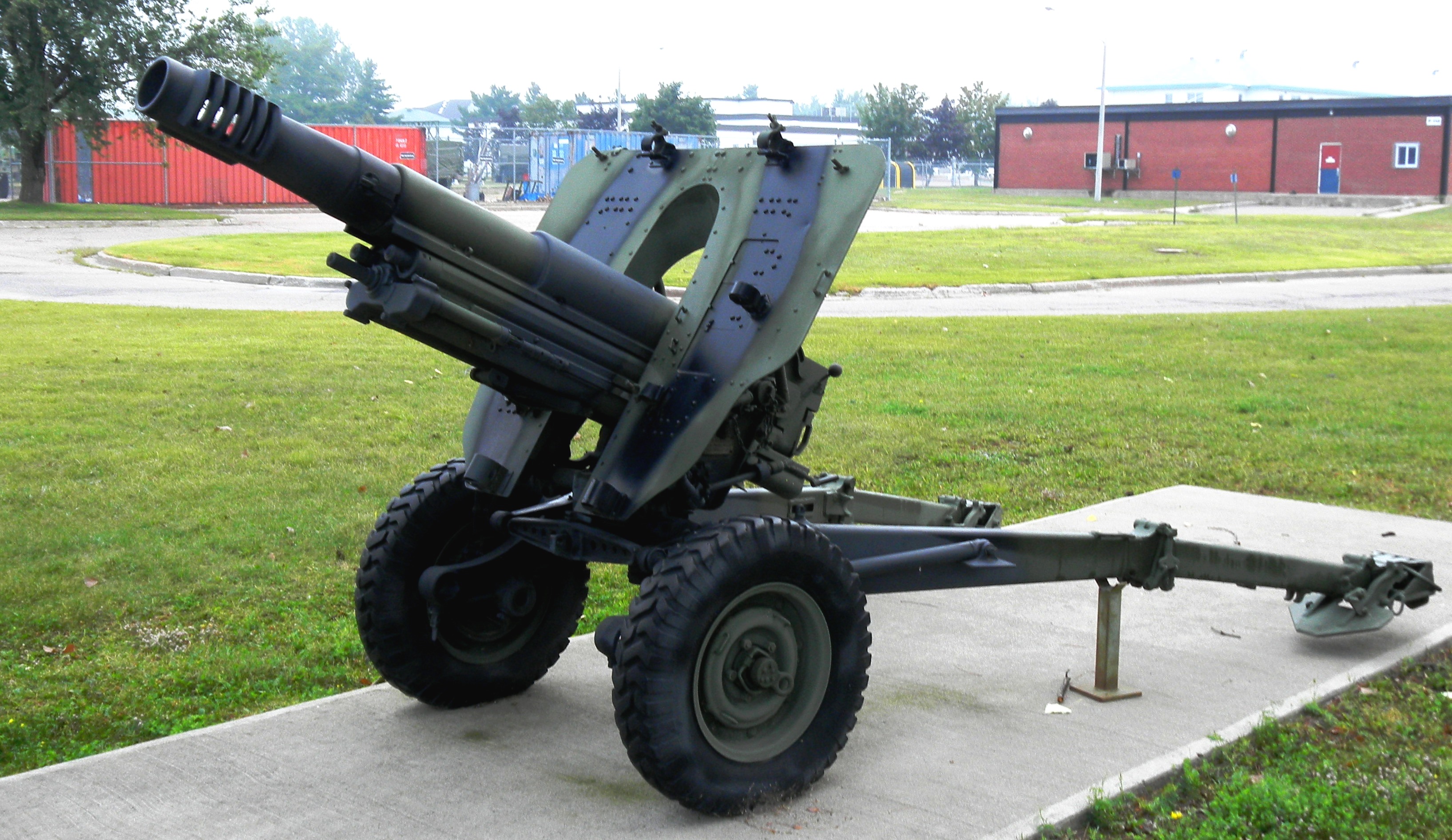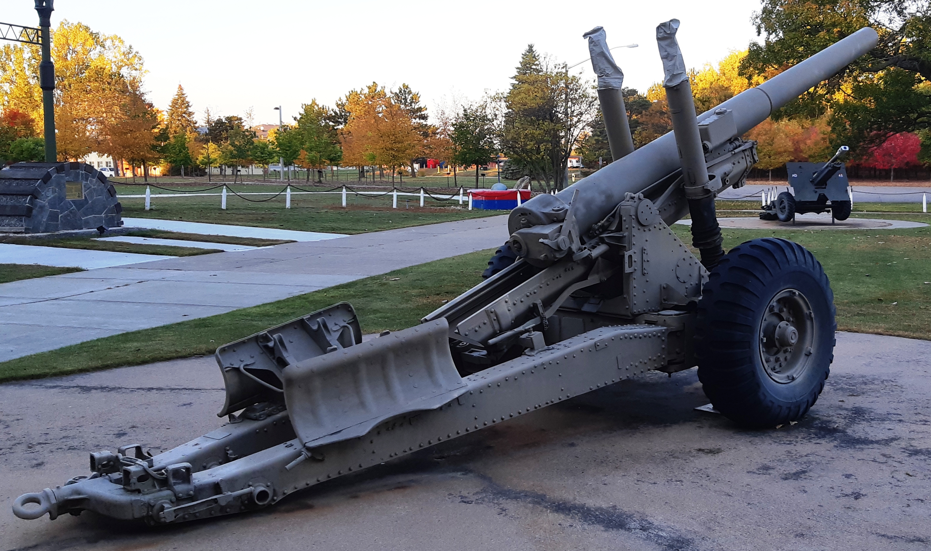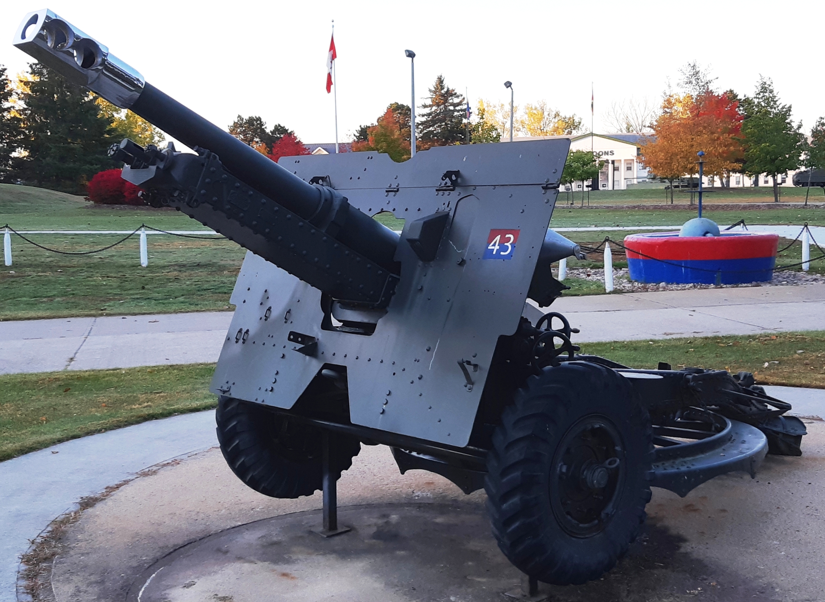 5.5-inch BL Mk. III Gun on a Mk. I Carriage, Artillery Park.  Canada made carriages for these guns during the Second World War, and after the war acquired 85 of them for the RCA.  The gun fired a 45.5-kg (100-pound) shell to a range of 14,800 metres (16,200 yards).