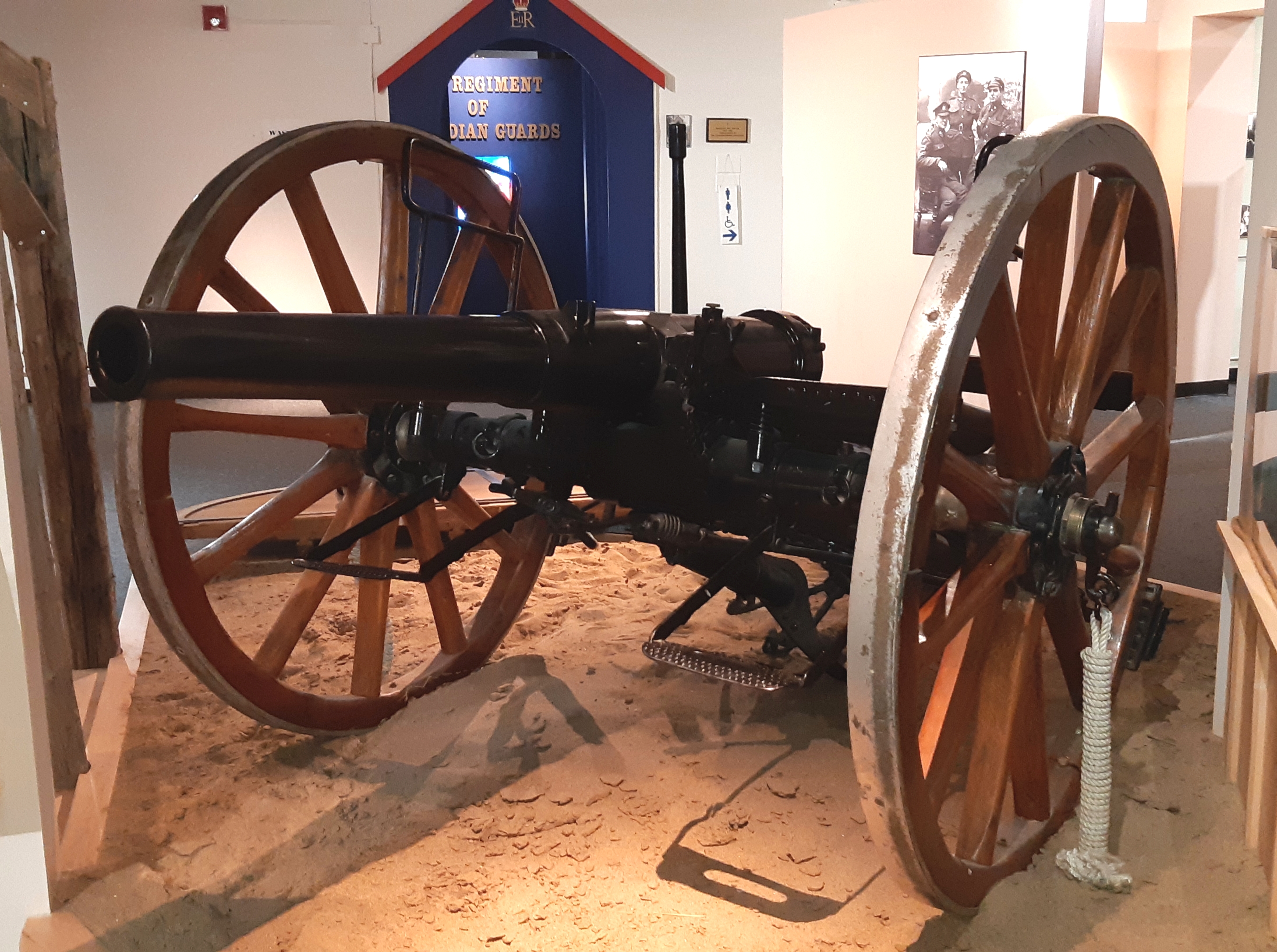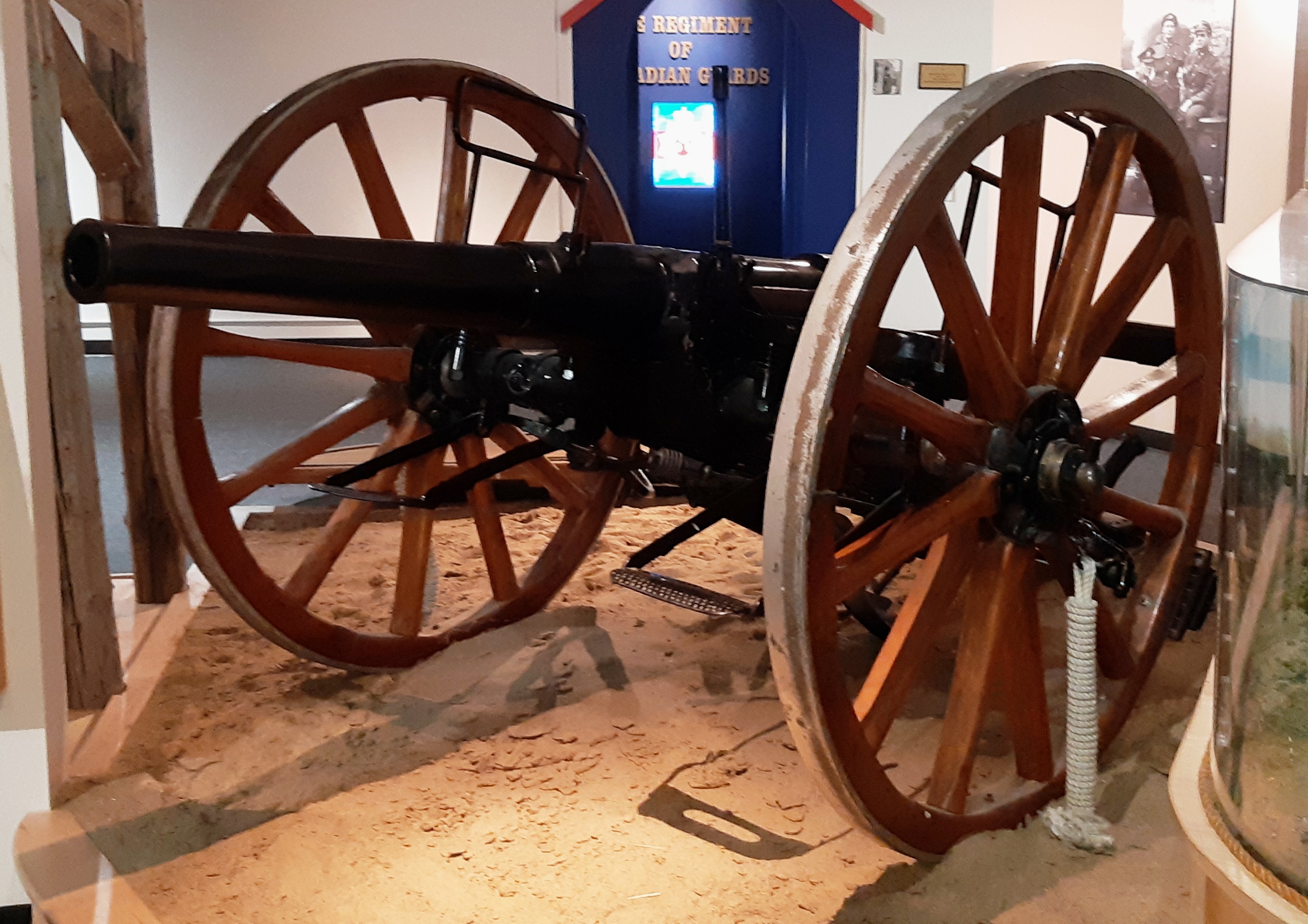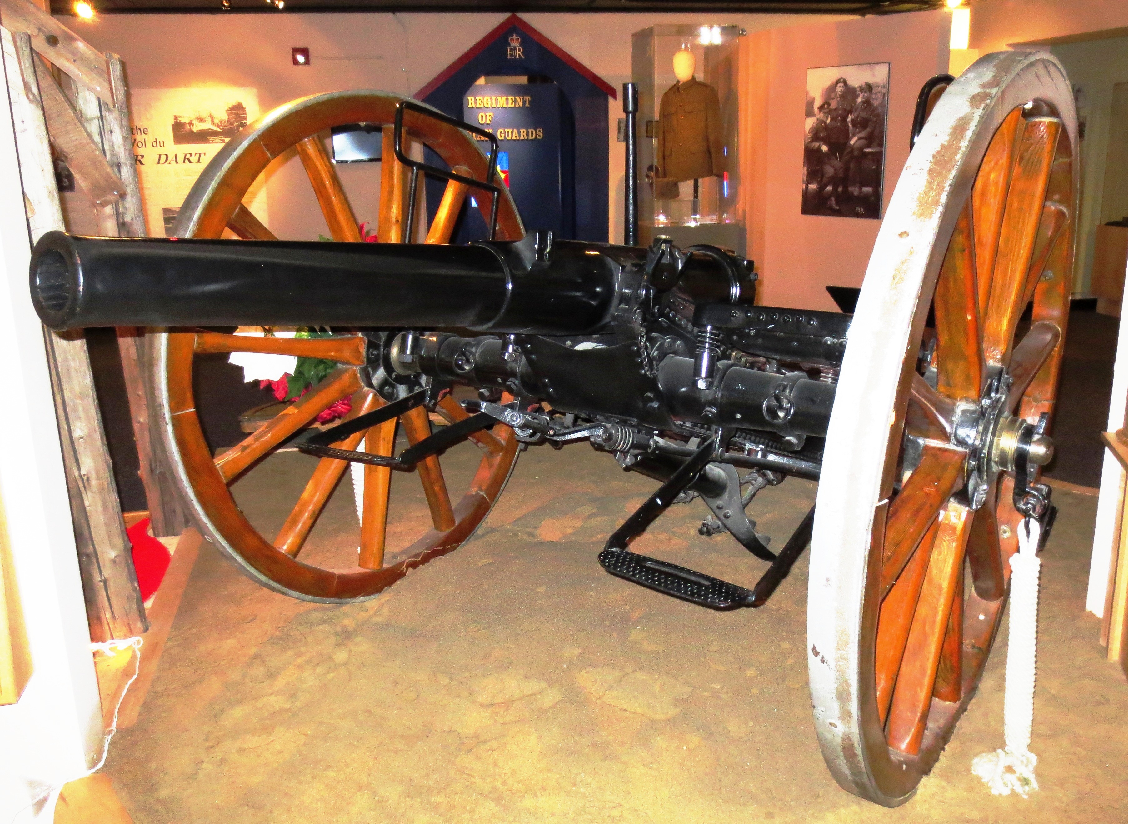 9-pounder 8-cwt Muzzleloading Rifle, weight 8-1-0 (924 pounds), RGF No. 22, I, 1870, mounted on a wheeled carriage, Foyer of RHQ, 2 RCHA.