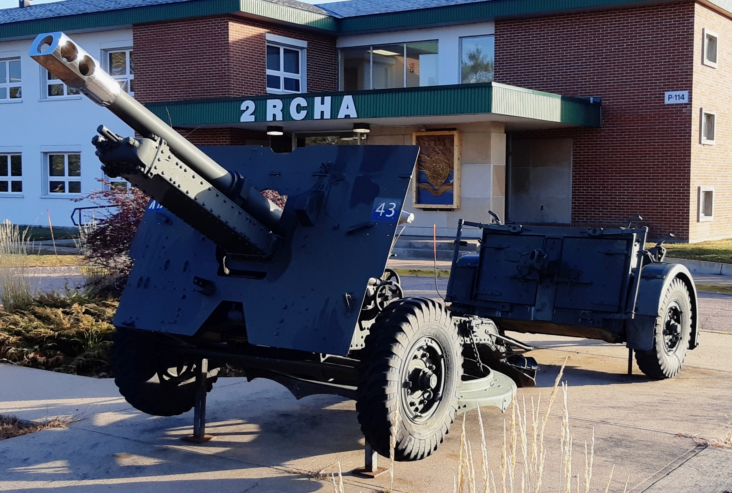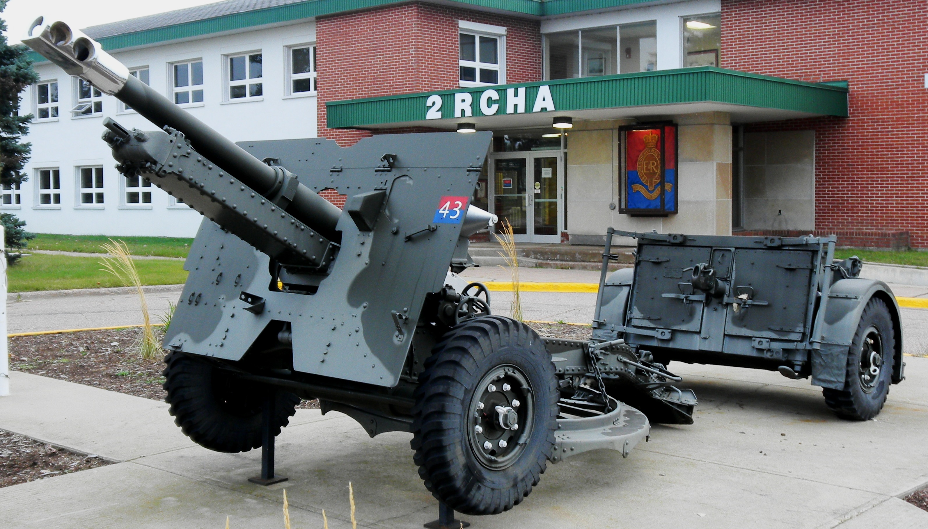 25-pounder C Mk. 2 QF Field Gun with No. 9 circular firing platform, with Limber at Regimental HQ, 2 RCHA.  No. 5 of 5 on base.